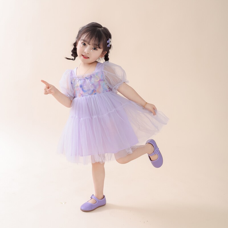女童网纱蕾丝连衣裙夏季2026年新款儿童洋气甜美女宝宝短袖裙子潮