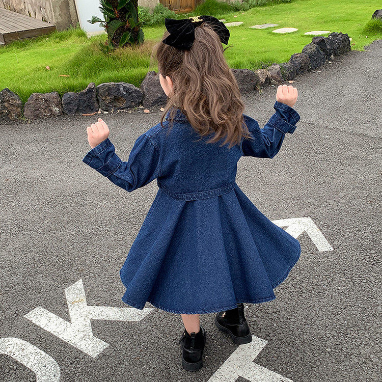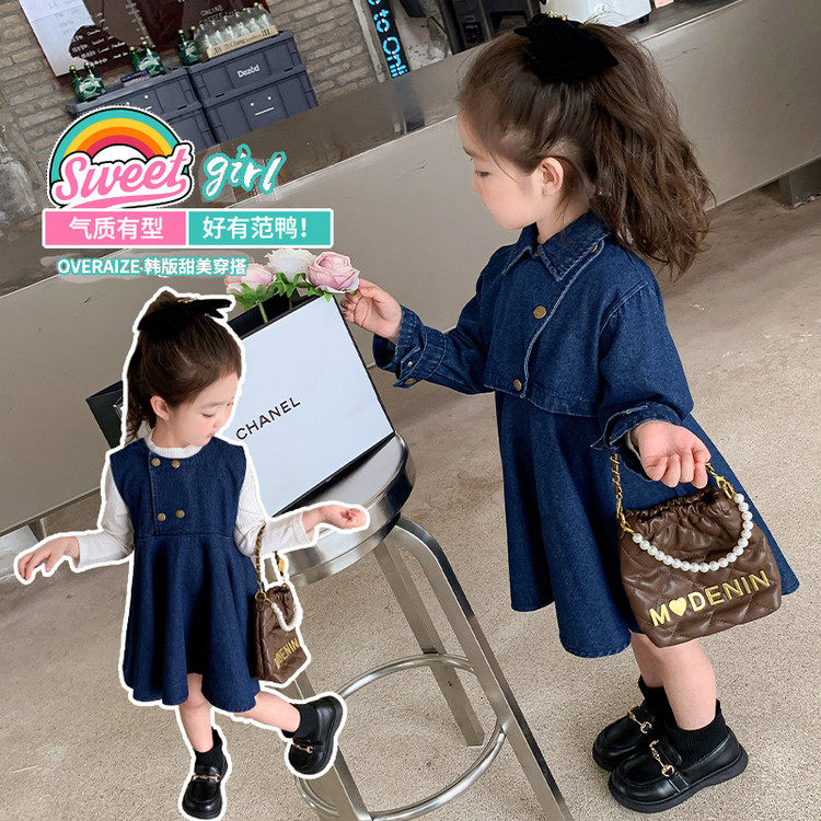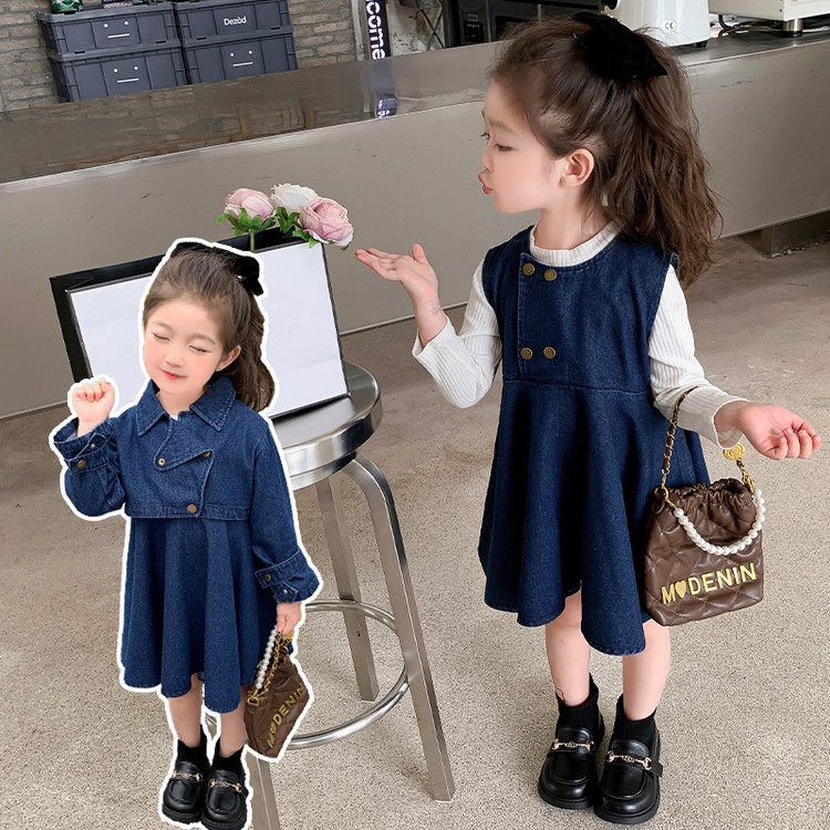 甜美学院风牛仔连衣裙女童春秋2件套长袖裙子小个子2026透气薄款