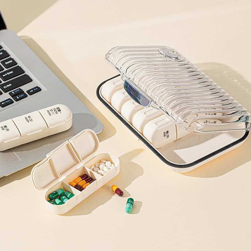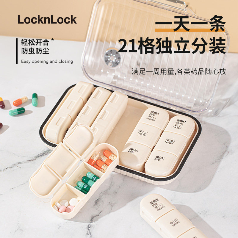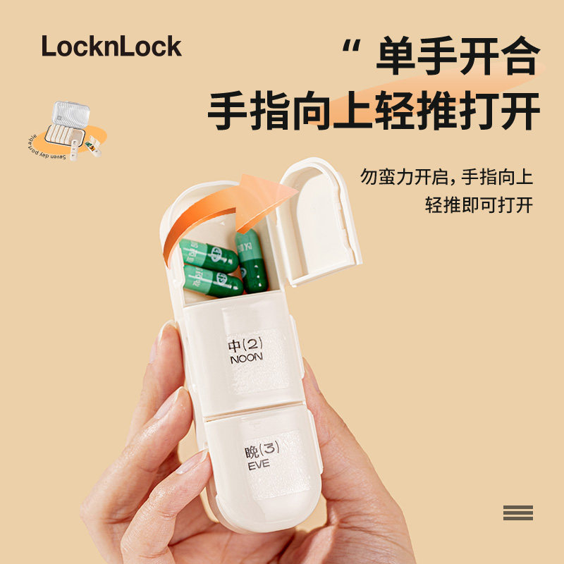 乐扣乐扣药盒便携式药物分装药品早中晚一周七天每日三迷你随身小