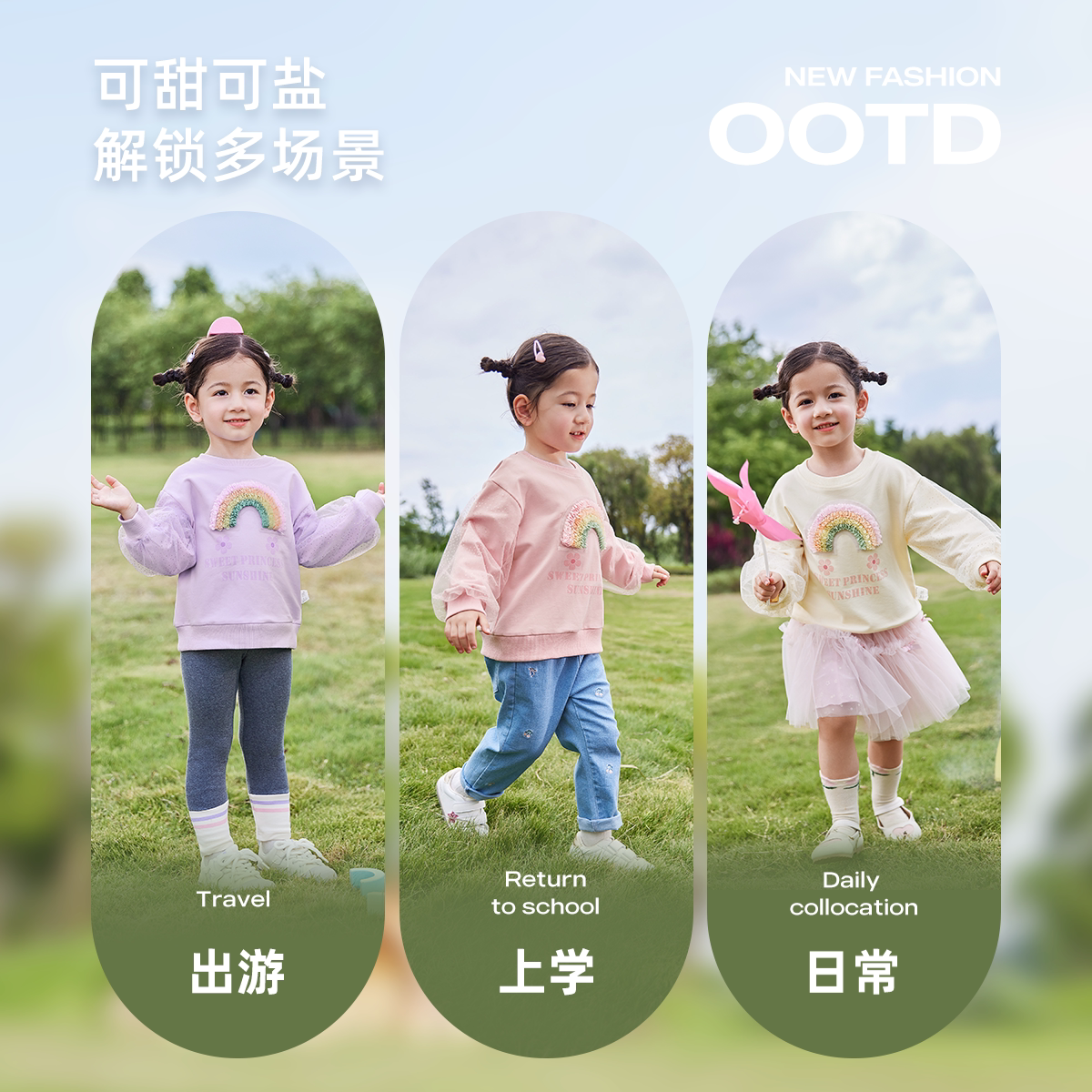 [7A抗菌]女童卫衣儿童洋气新款春装小童彩虹圆领上衣宝宝可爱衣服