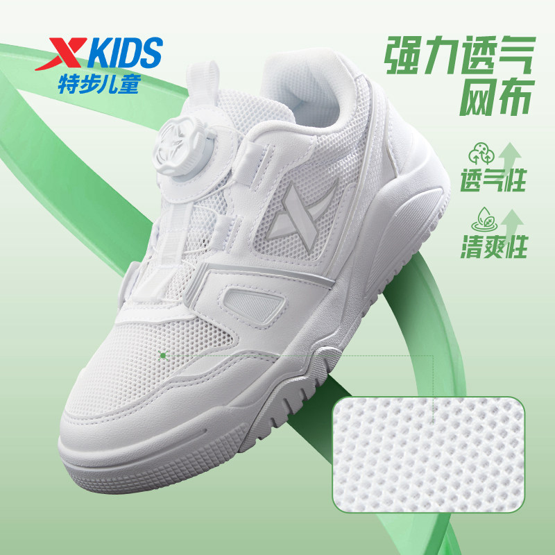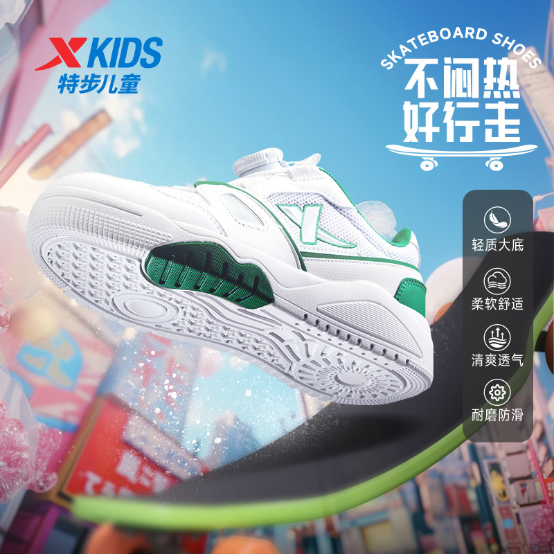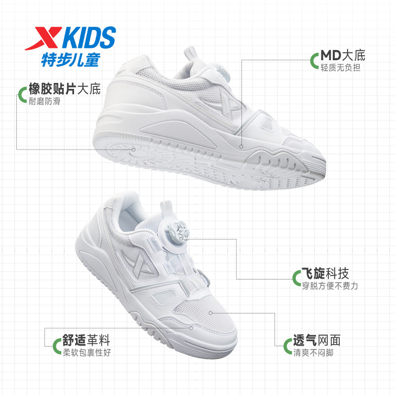 特步童鞋儿童板鞋男旋转纽扣小白鞋2025秋冬季新款女童运动休闲鞋