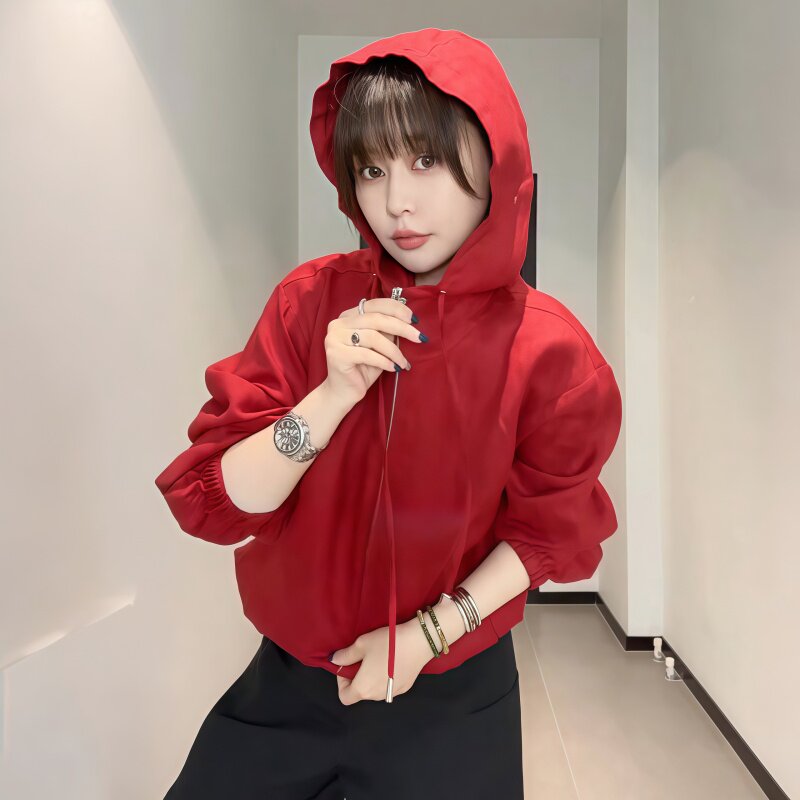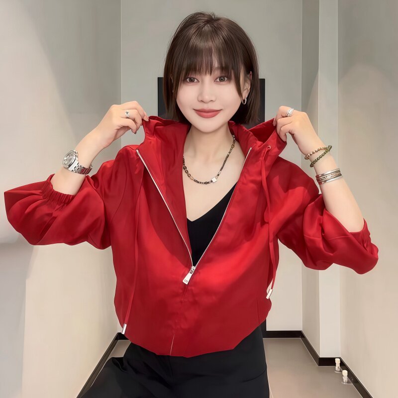 红色薄款连帽防晒衣女2026新款爆款夏季休闲户外外套女款春季上衣