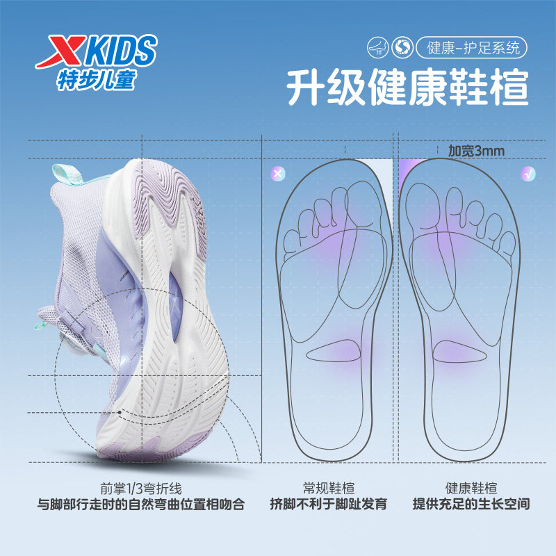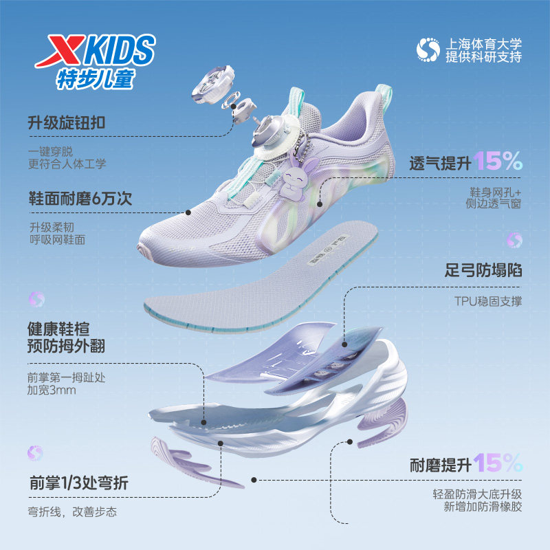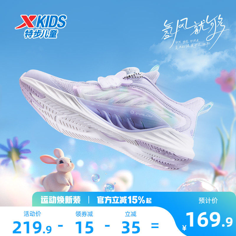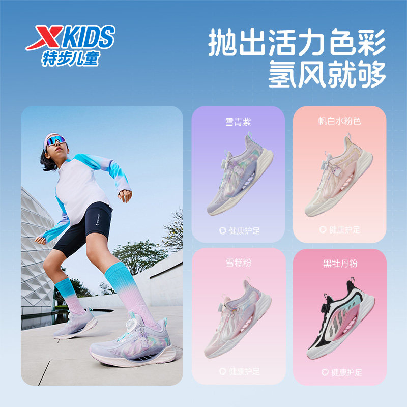 【氢风8.0护足跑鞋】特步儿童运动鞋女童跑步鞋旋转纽扣透气童鞋