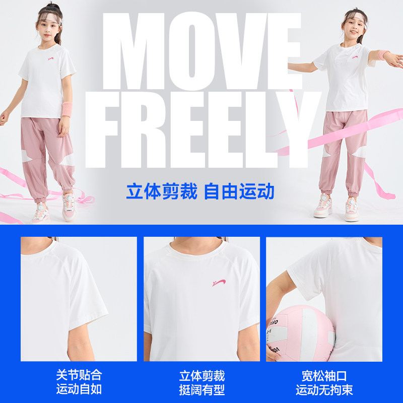 贵人鸟童装女童夏款套装女大童冰丝凉感运动服儿童速干短袖t恤夏