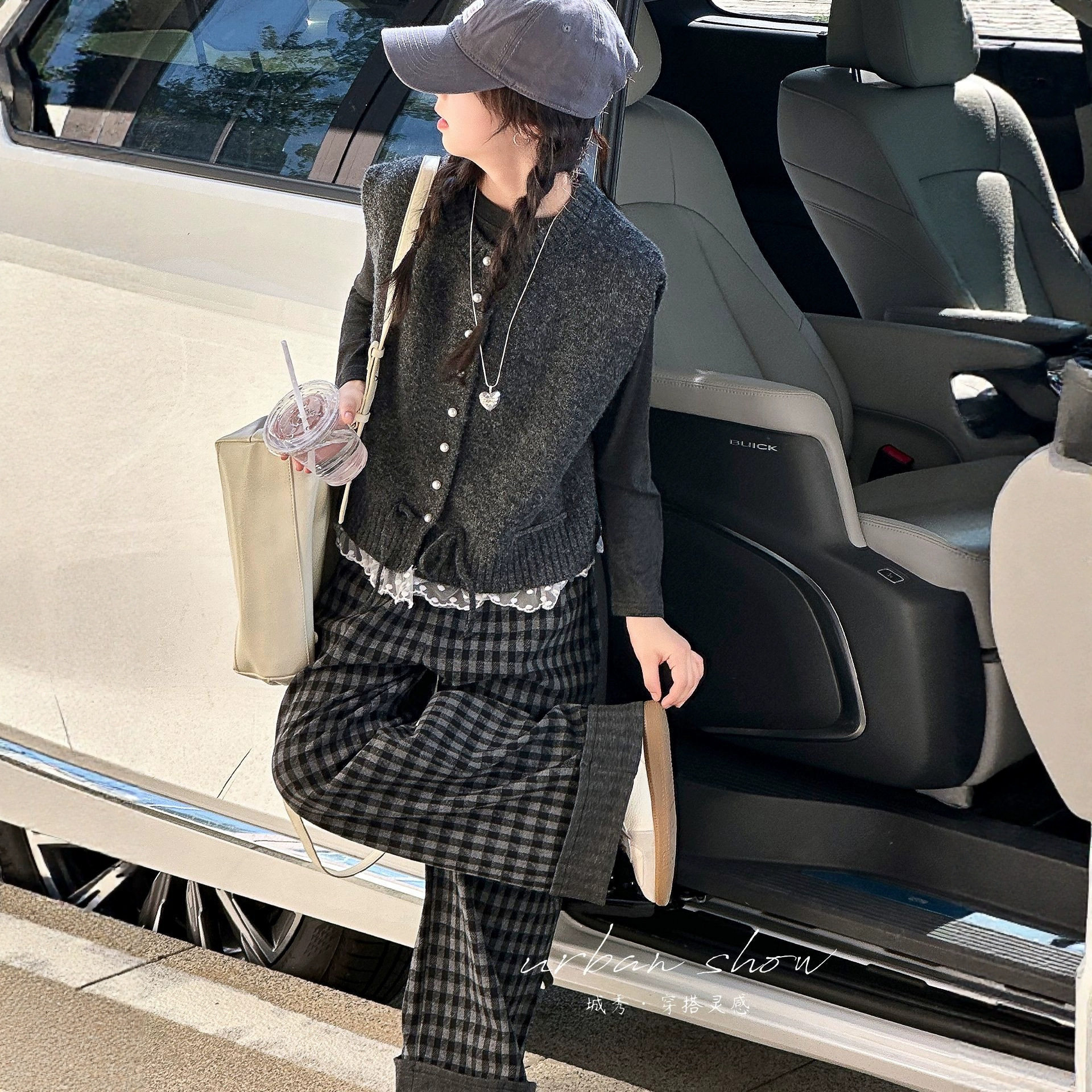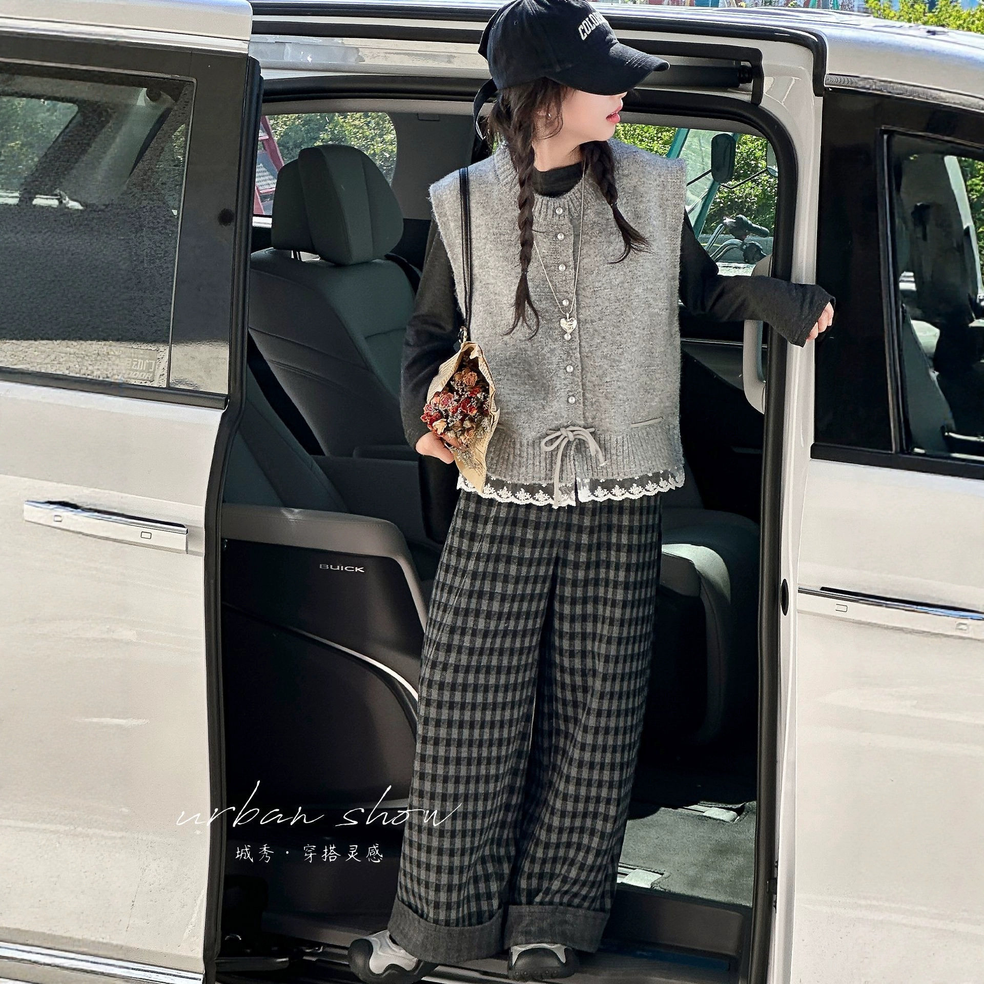 女童春装套装2026新款儿童春秋时髦洋气大童毛衣开衫格子裤两件套