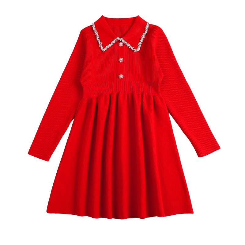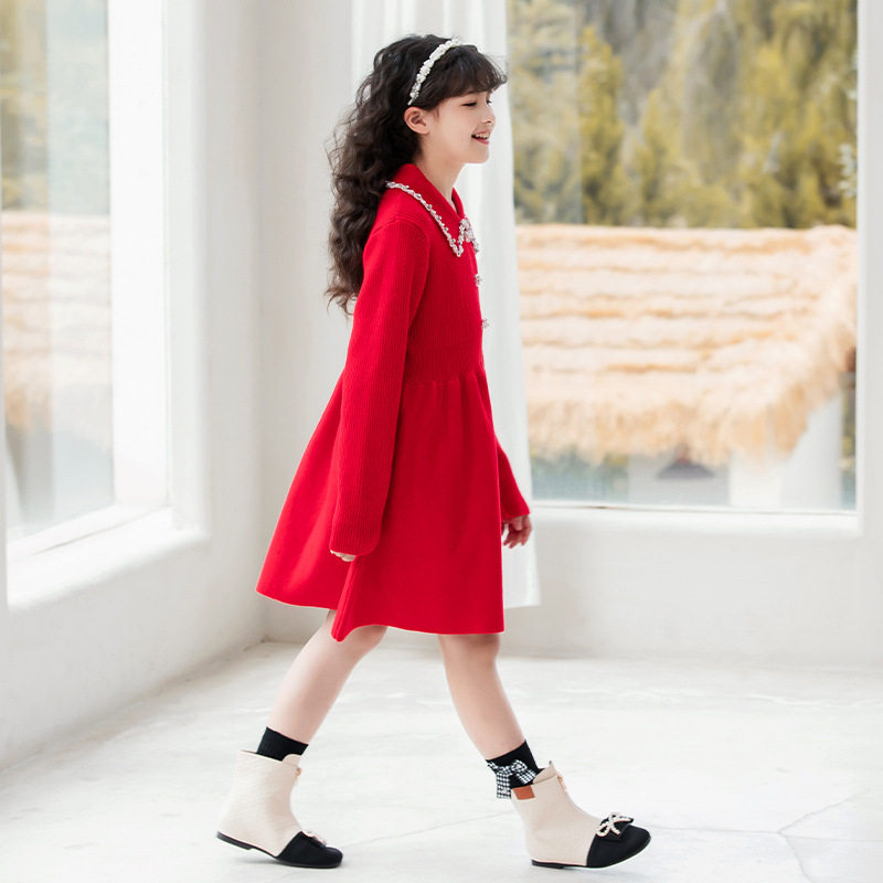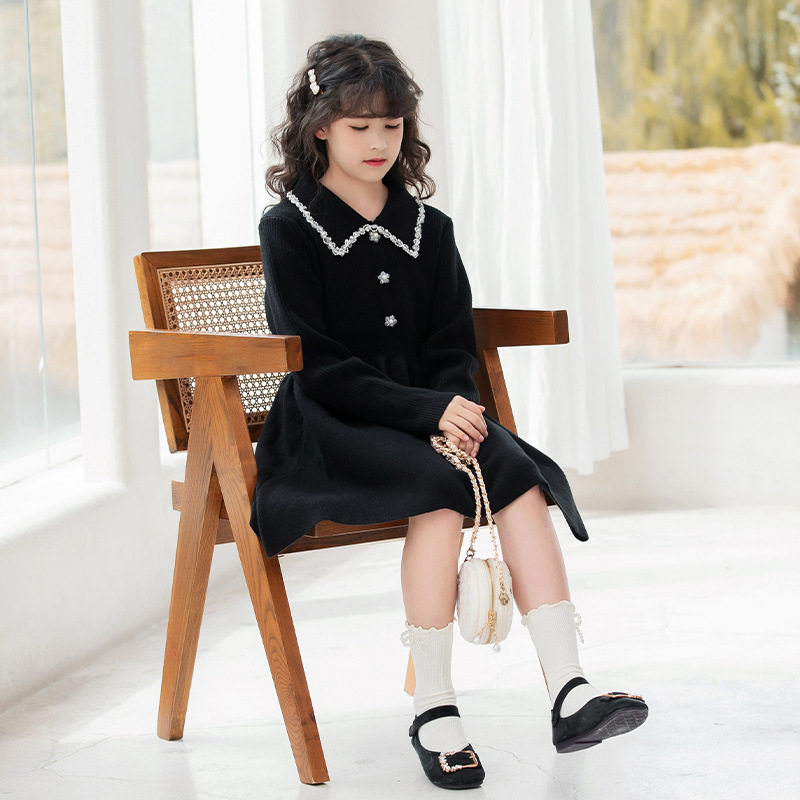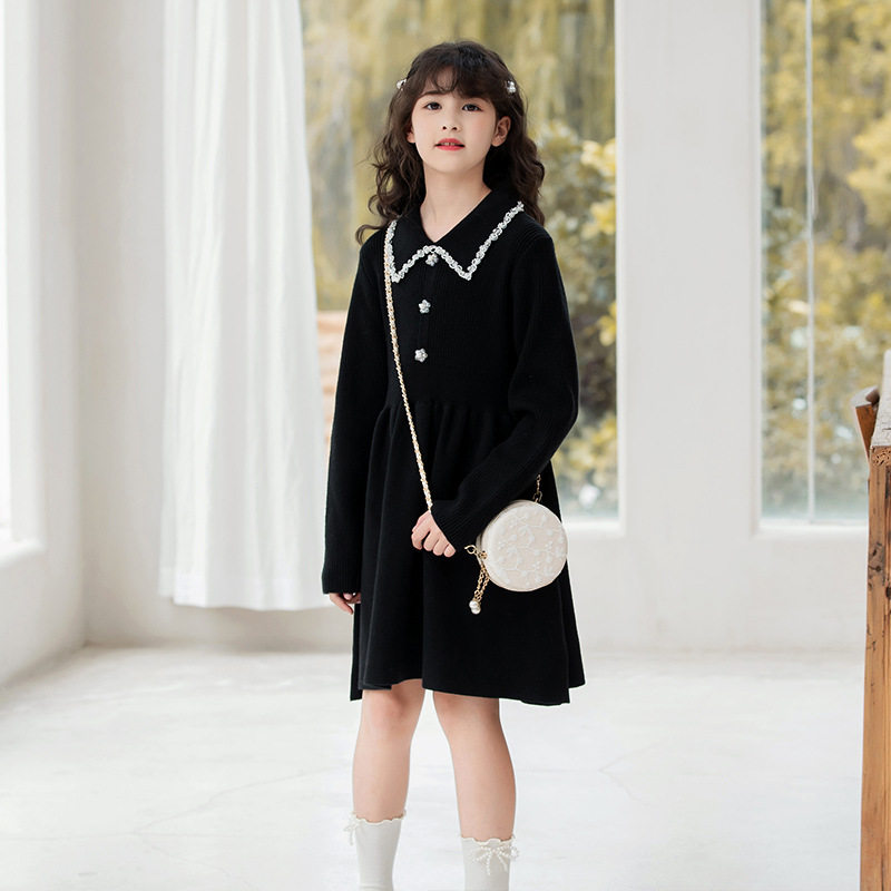 女童毛衣裙春款2023新款春秋洋气童装针织连衣裙中大童中长款裙子
