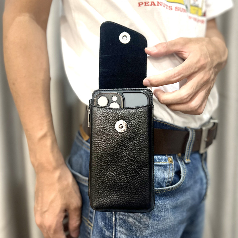 6.7/6.8寸真皮手机腰包男款穿皮带 单层竖款轻薄头层牛皮工地干活