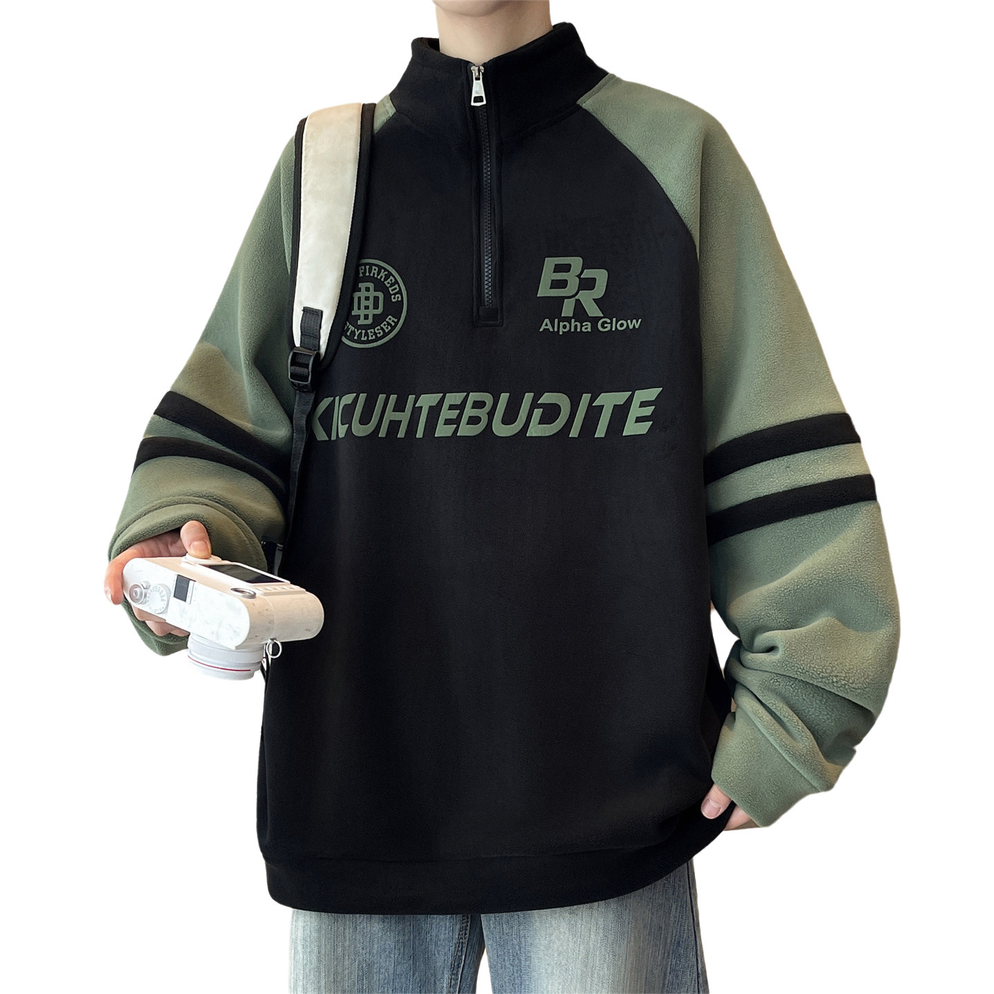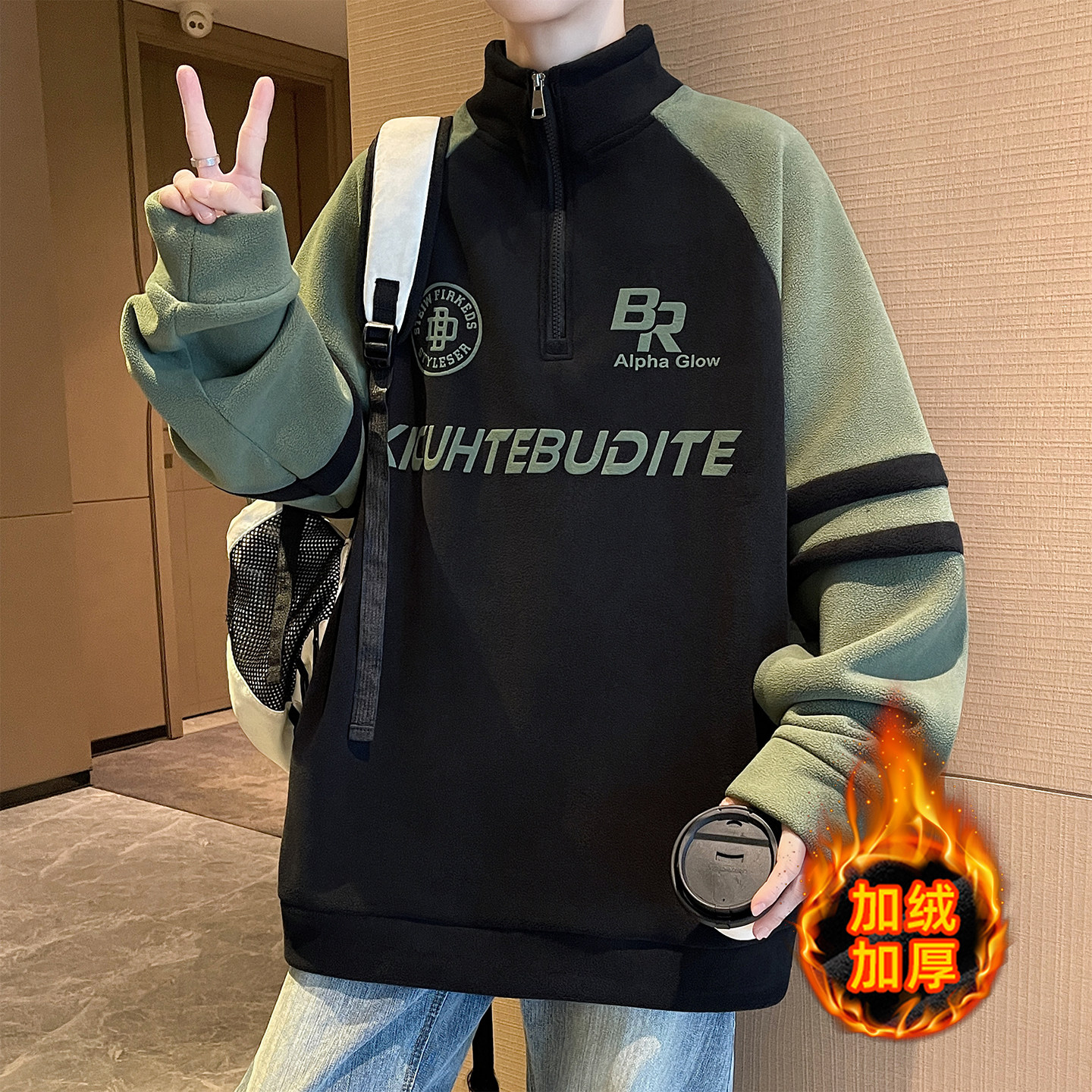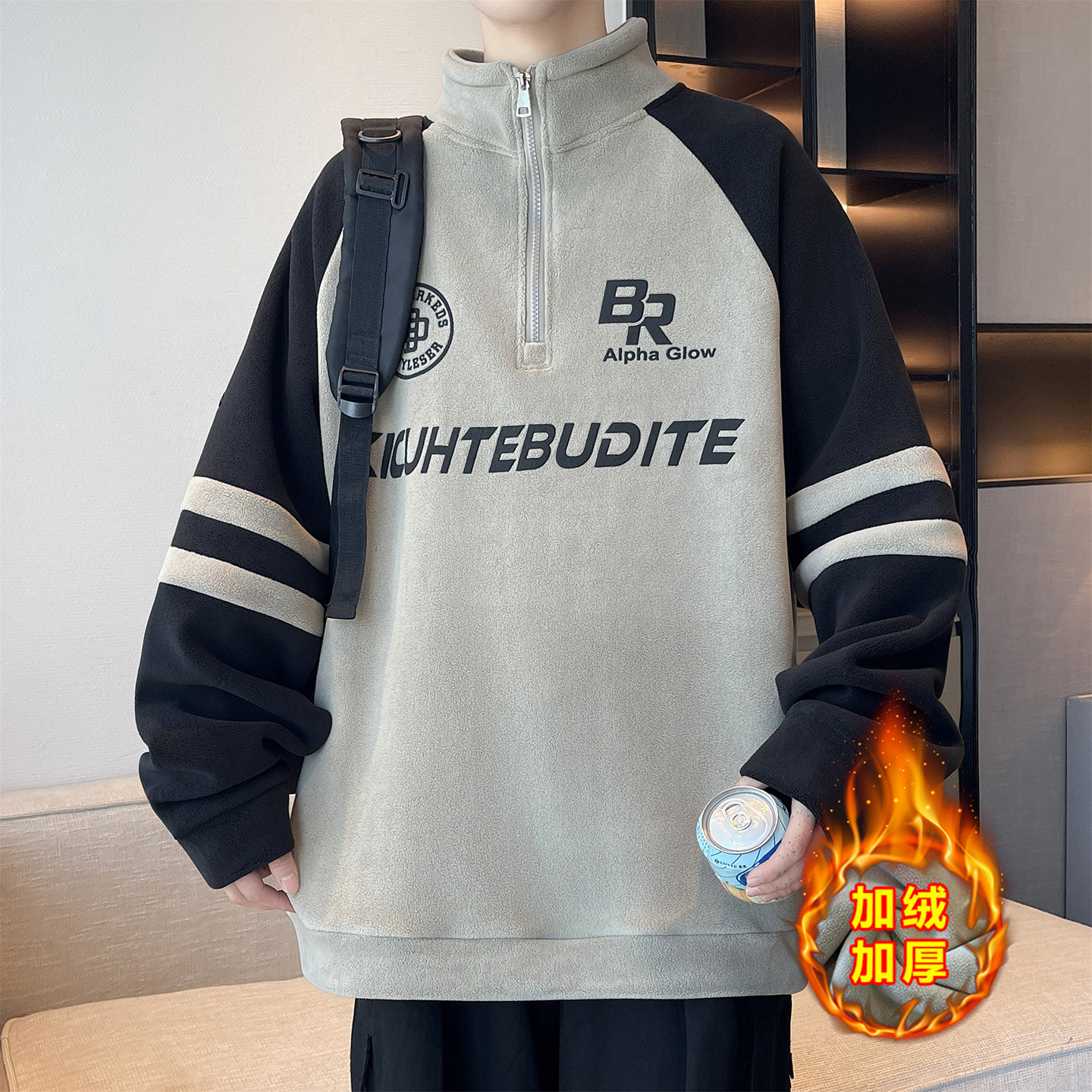 秋冬季半拉链立领卫衣男孩大童加绒加厚保暖青少年学生打底衫上衣