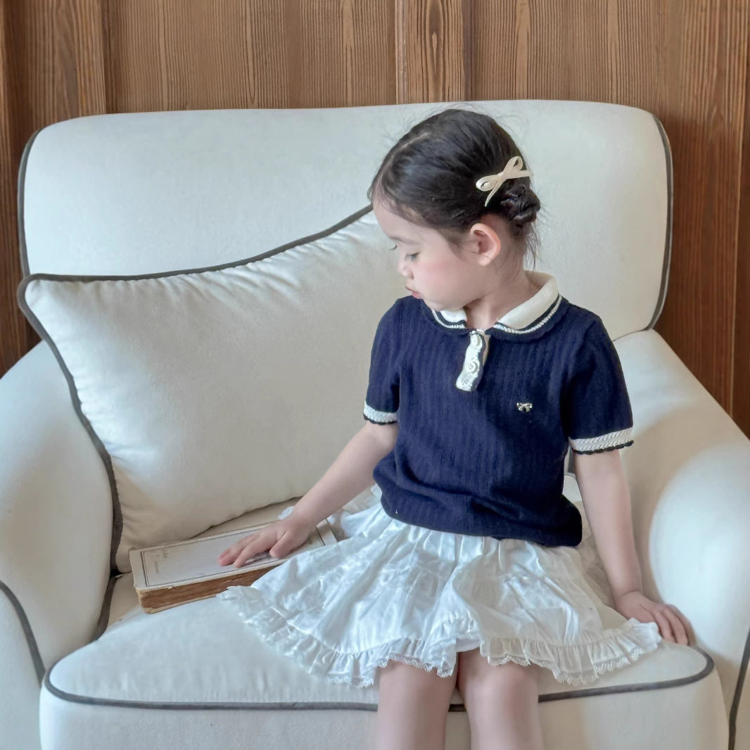 女童洋气学院风短袖薄款T恤衬衫儿童韩版薄款夏季上衣棉线针织衫