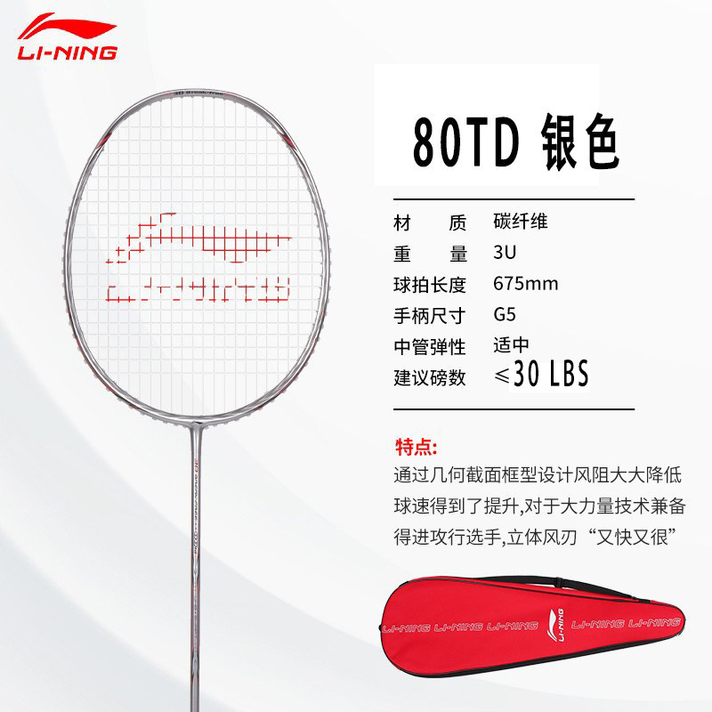 李宁风刃80TD羽毛球拍官方旗舰正品全碳素纤维进攻型立体比赛单拍
