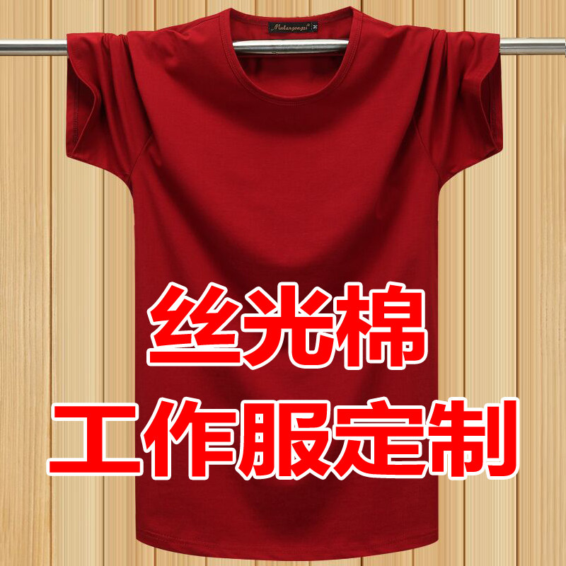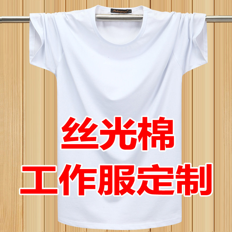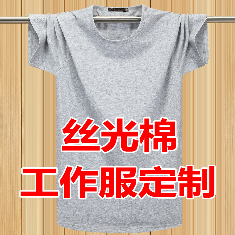 夏季冰爽丝光棉弹力薄款短袖T恤定制刺绣logo天蓝色工作服体恤男