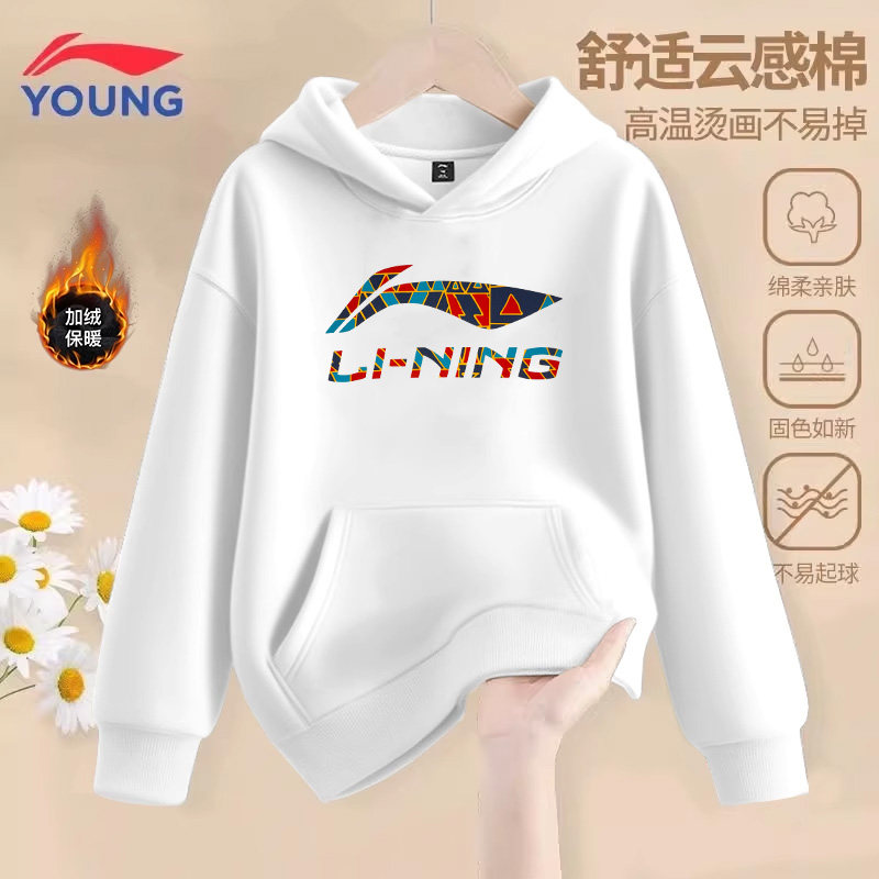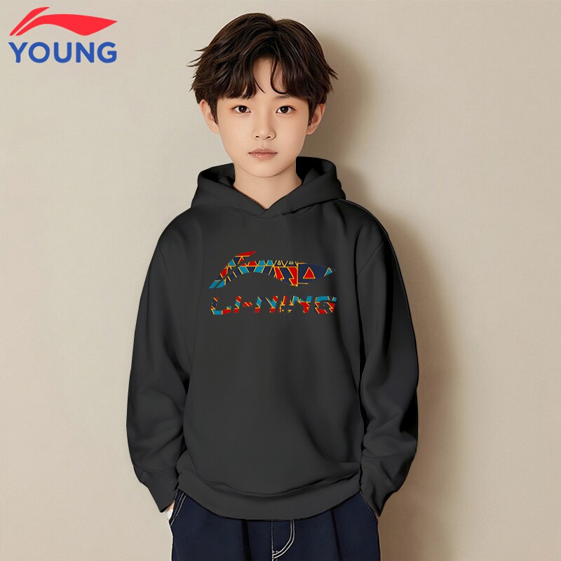李宁童装儿童连帽卫衣男孩T恤男童春秋季新款潮流百搭青少年长袖