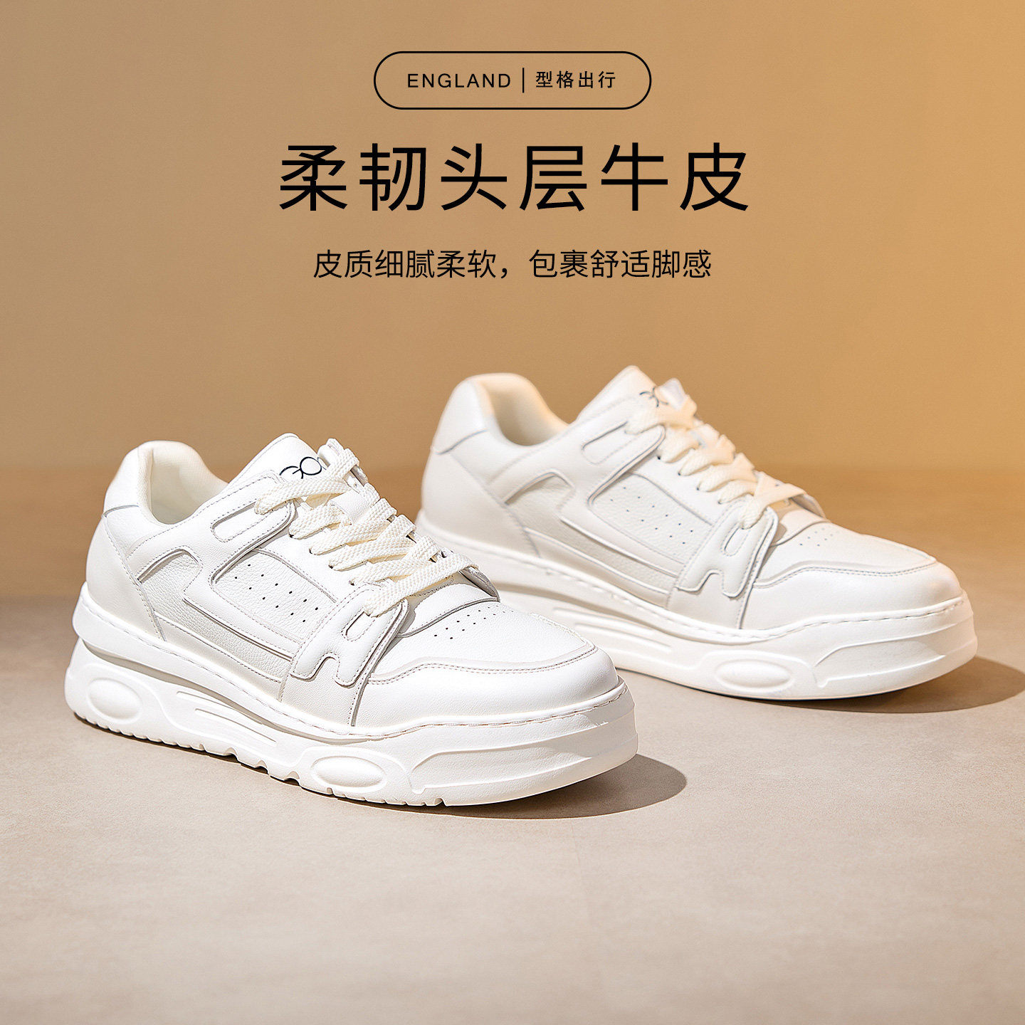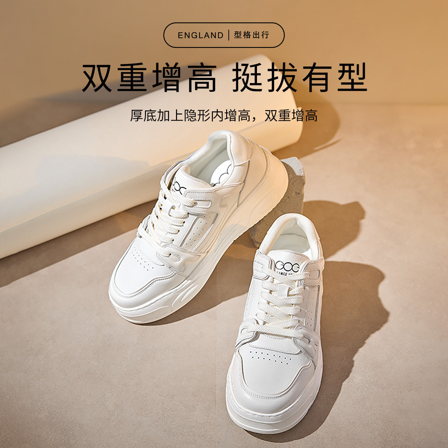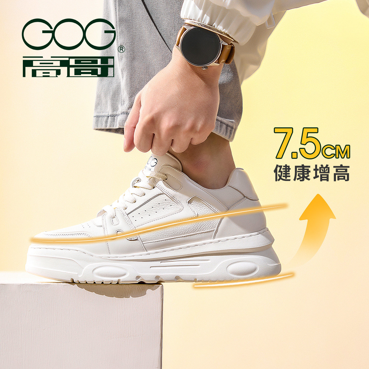 高哥增高运动鞋男款春季男鞋头层牛皮潮流休闲鞋子白色厚底板鞋