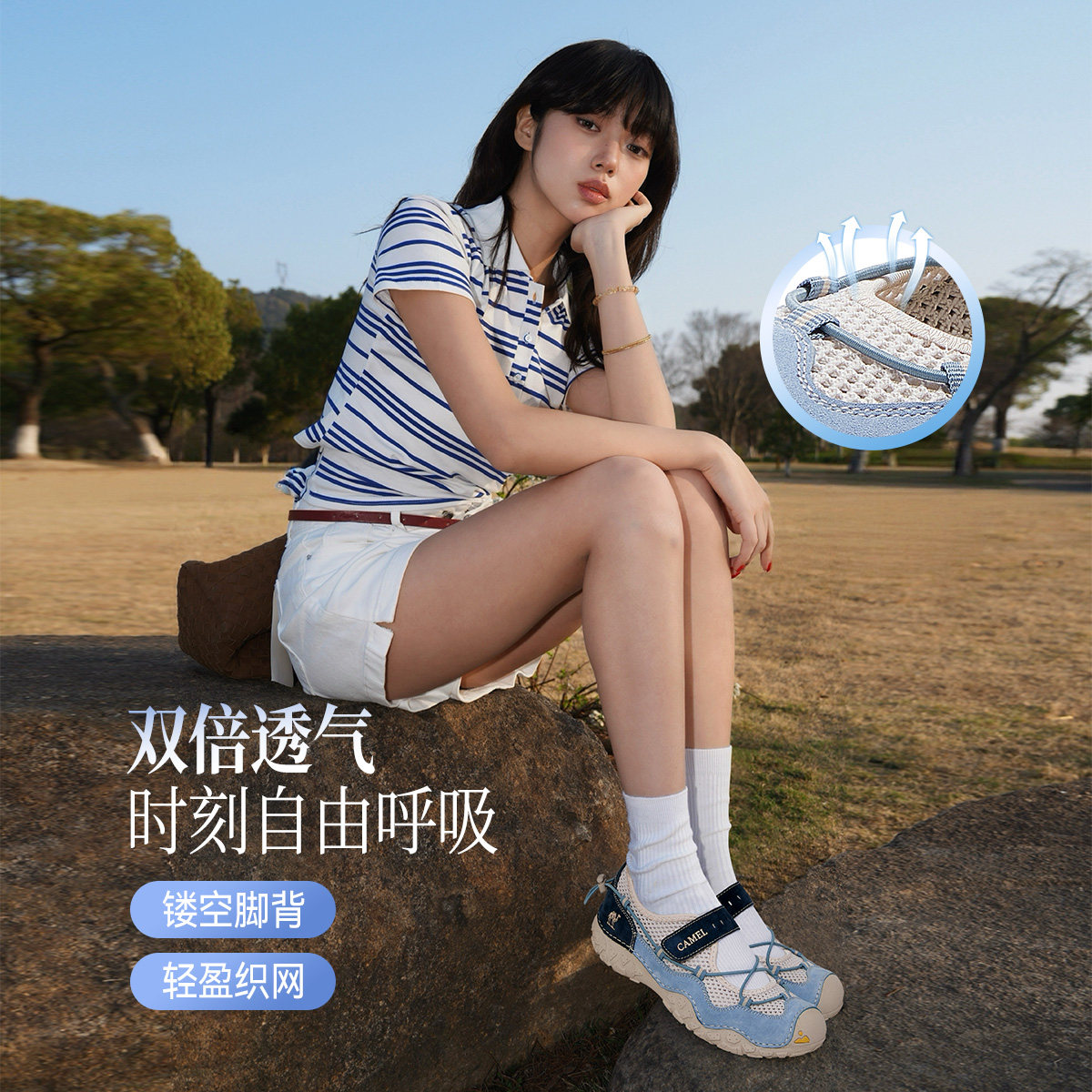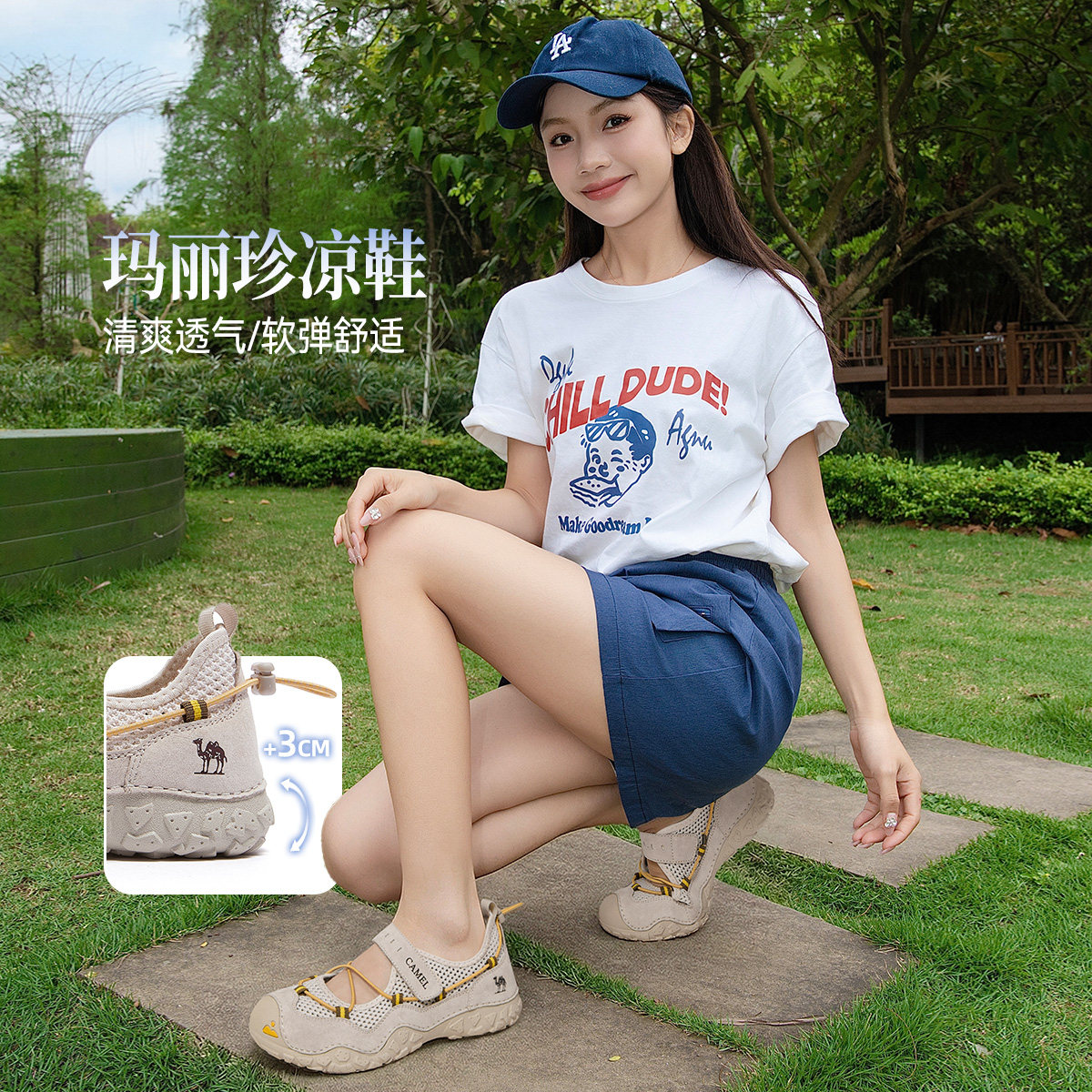 骆驼休闲凉鞋女鞋2026夏季新款户外网面透气丑萌沙滩鞋运动玛丽珍