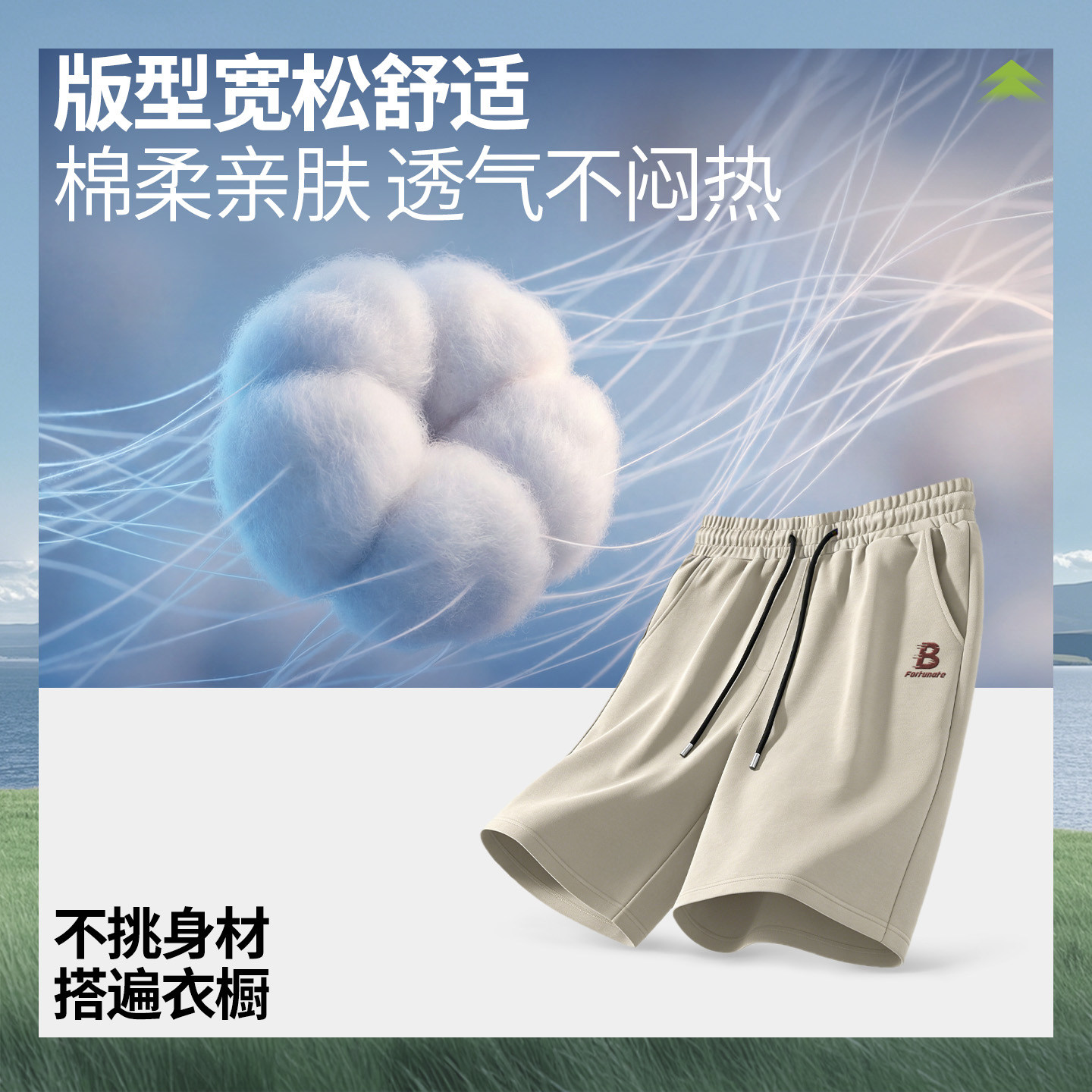 班尼路青少年运动短裤男款夏季清爽休闲直筒裤松紧腰纯棉裤子男A