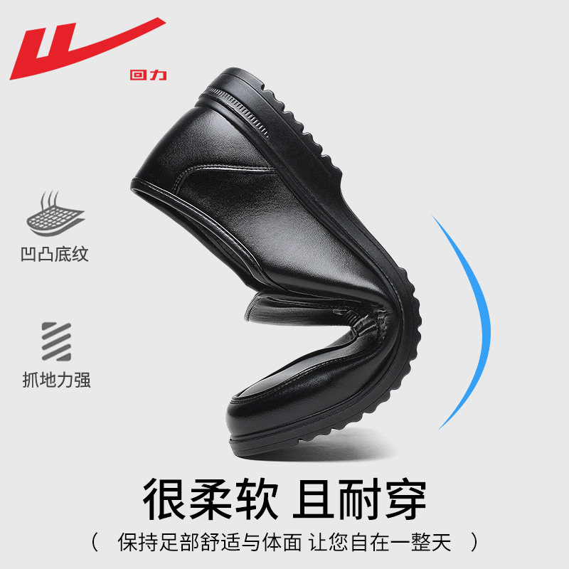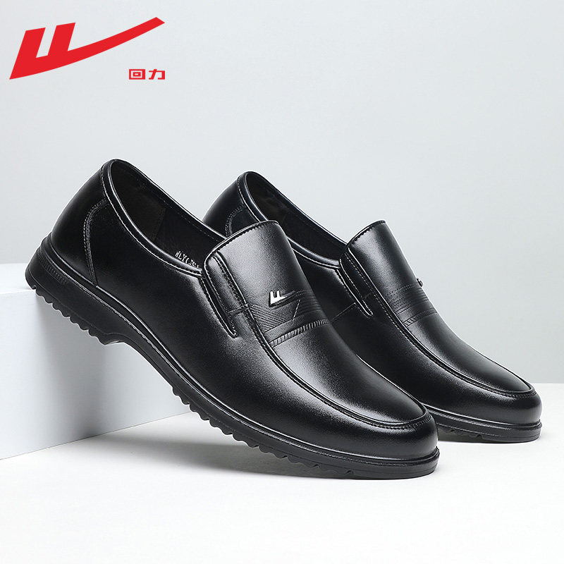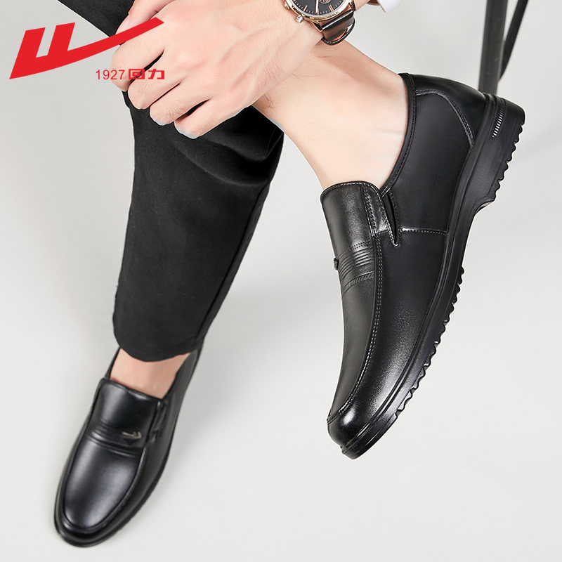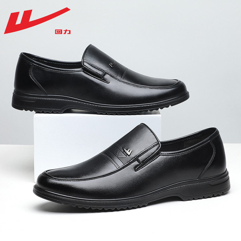 回力皮鞋男款2026新款春秋软底休闲皮鞋商务正装一脚蹬懒人工作鞋