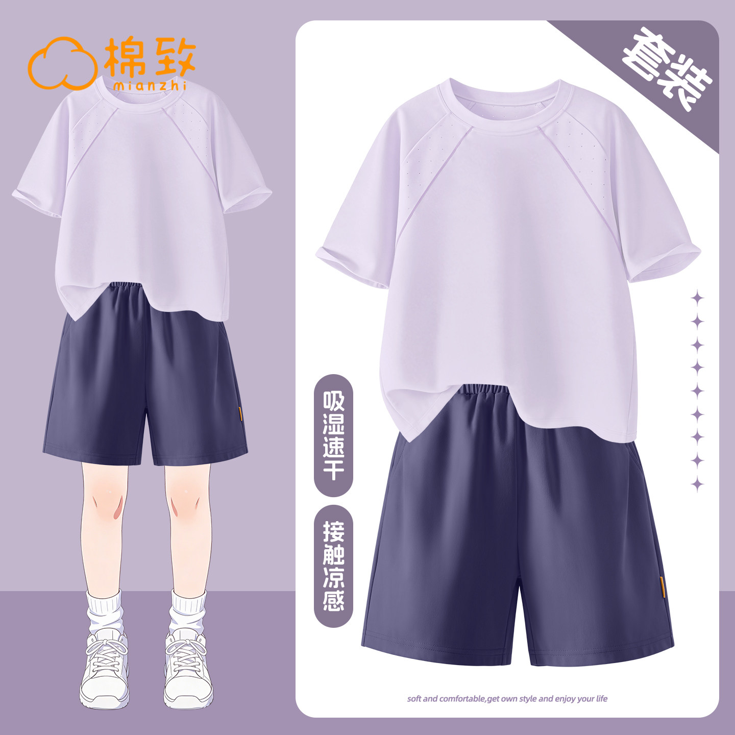 棉致女童夏装套装2026新款夏季凉感速干女孩运动服儿童短袖短裤薄
