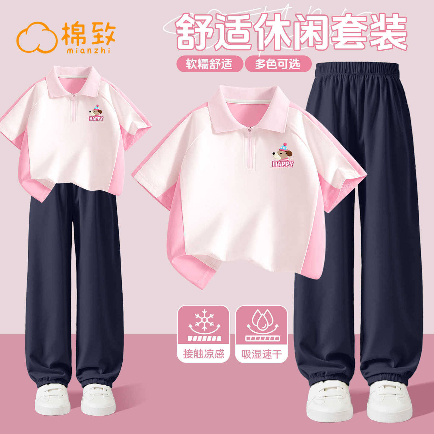 棉致女童套装夏薄款2026新款速干短袖女孩运动服儿童夏装两件套女