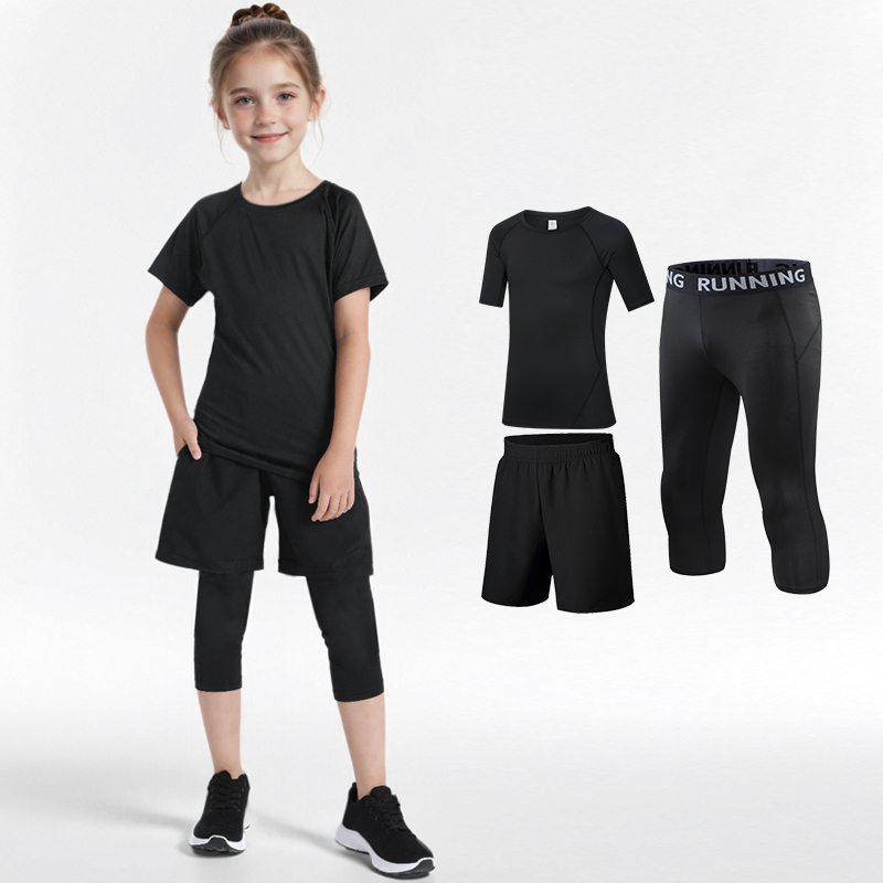 儿童篮球服紧身衣训练服女童打底速干夏季短袖七分裤运动瑜伽舞蹈