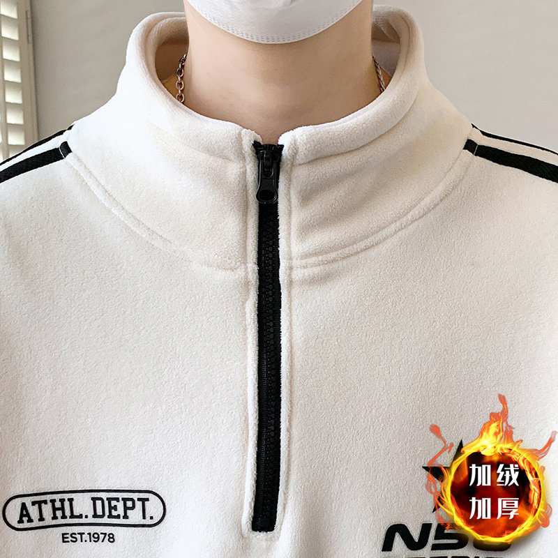 双面奥粒绒卫衣男青少年加绒加厚2025秋冬新款立领套头初中生上衣