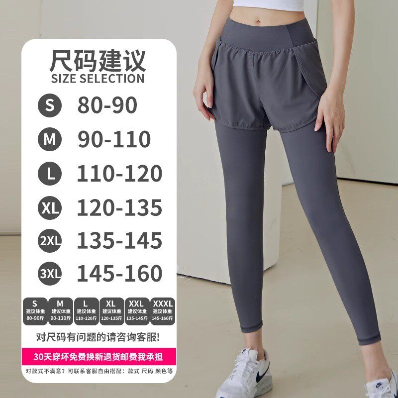 春季款专业跑步训练压缩口袋长裤运动假两件瑜伽裤女高弹速干长裤