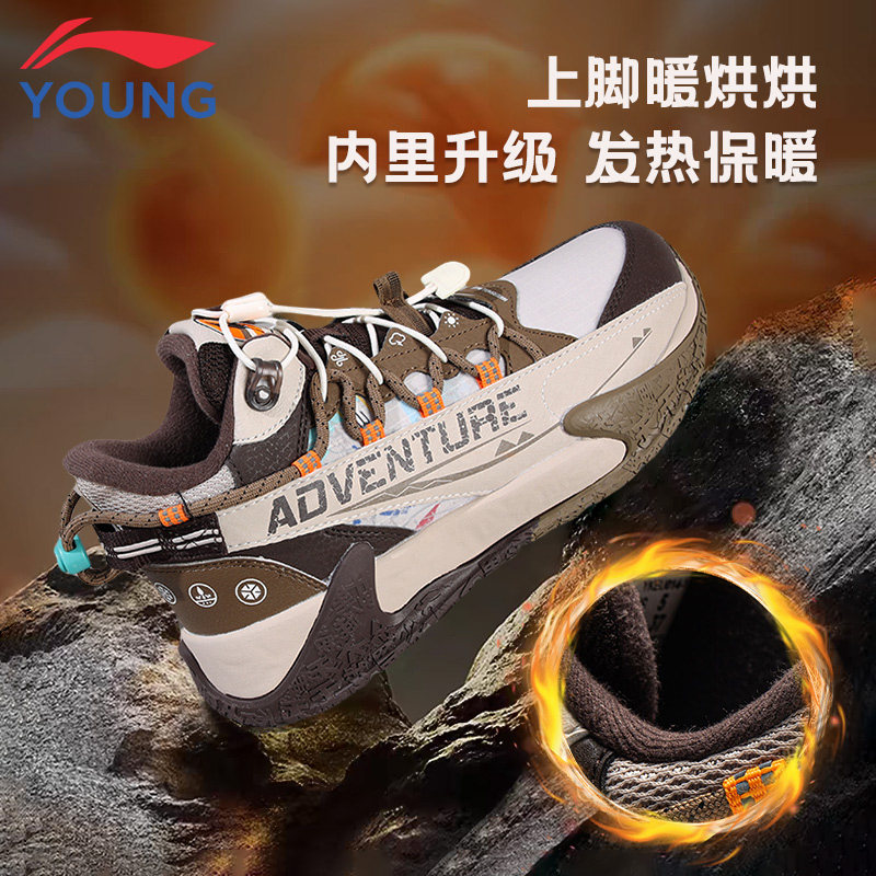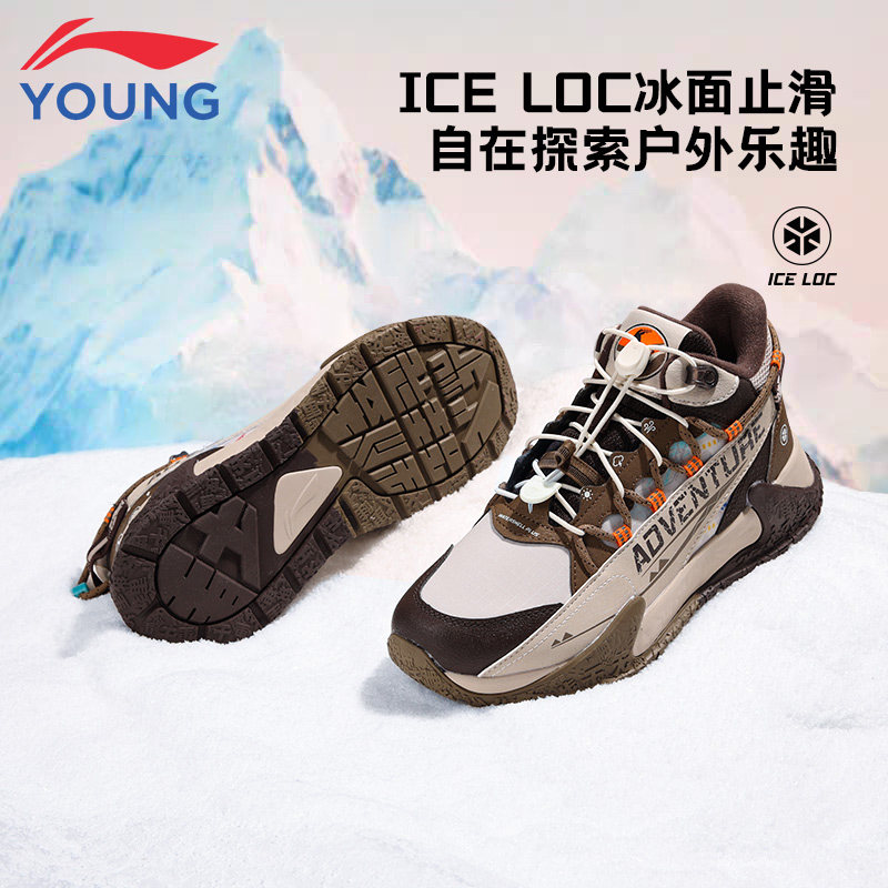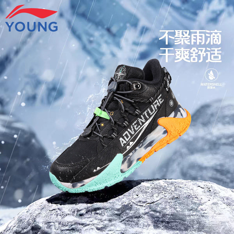 李宁童鞋儿童户外鞋男女大童2025新款冬季保暖防滑中帮休闲运动鞋