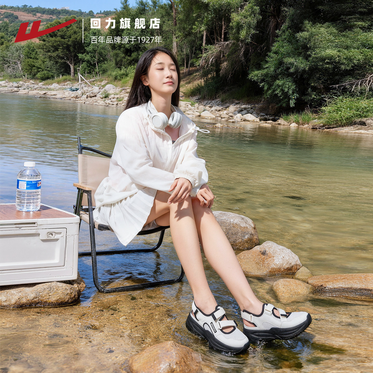 回力凉鞋女2026年夏季厚底增高休闲魔术贴沙滩鞋户外溯溪鞋女鞋子