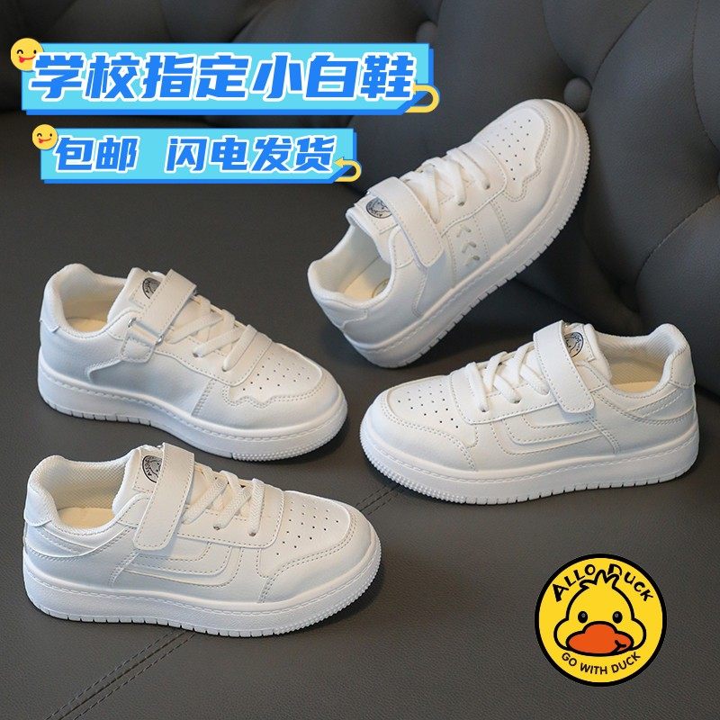 儿童鞋子白色运动鞋皮面童鞋女童小白鞋春秋款小学生男童休闲板鞋