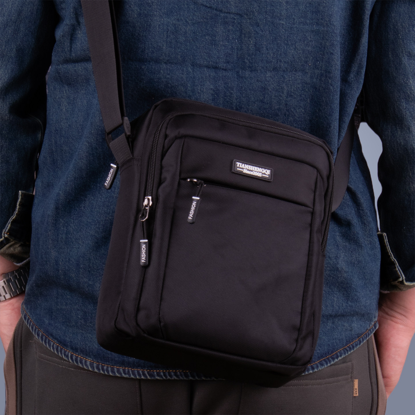男士单肩包休闲牛津布斜挎包男竖款商务背包大容量出行便携包新款