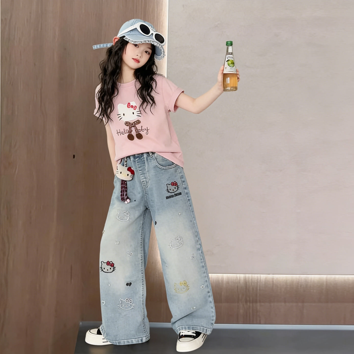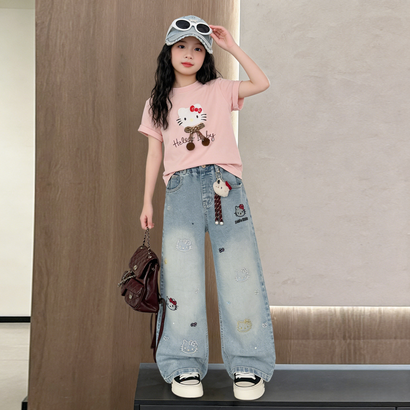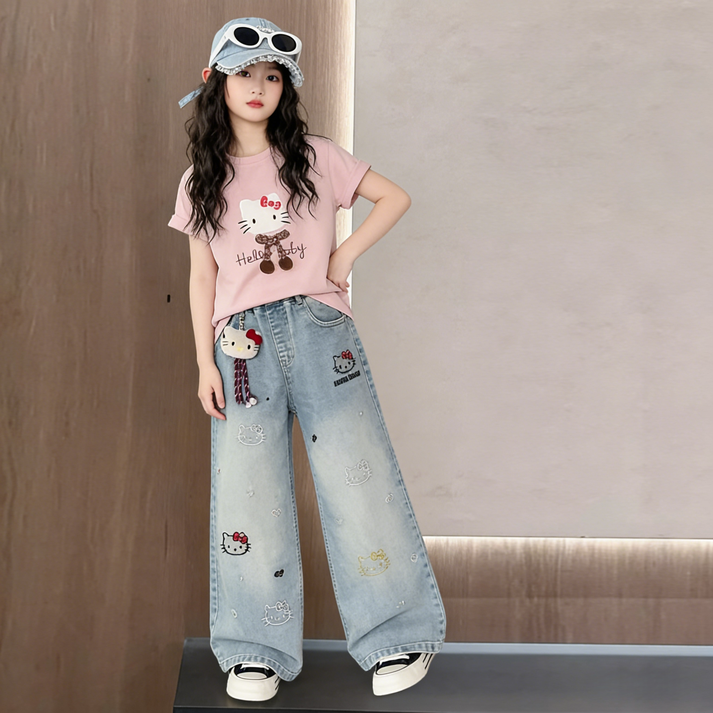 女童夏装套装2026新款儿童潮酷穿搭大童女装网红炸街短袖牛仔裤子