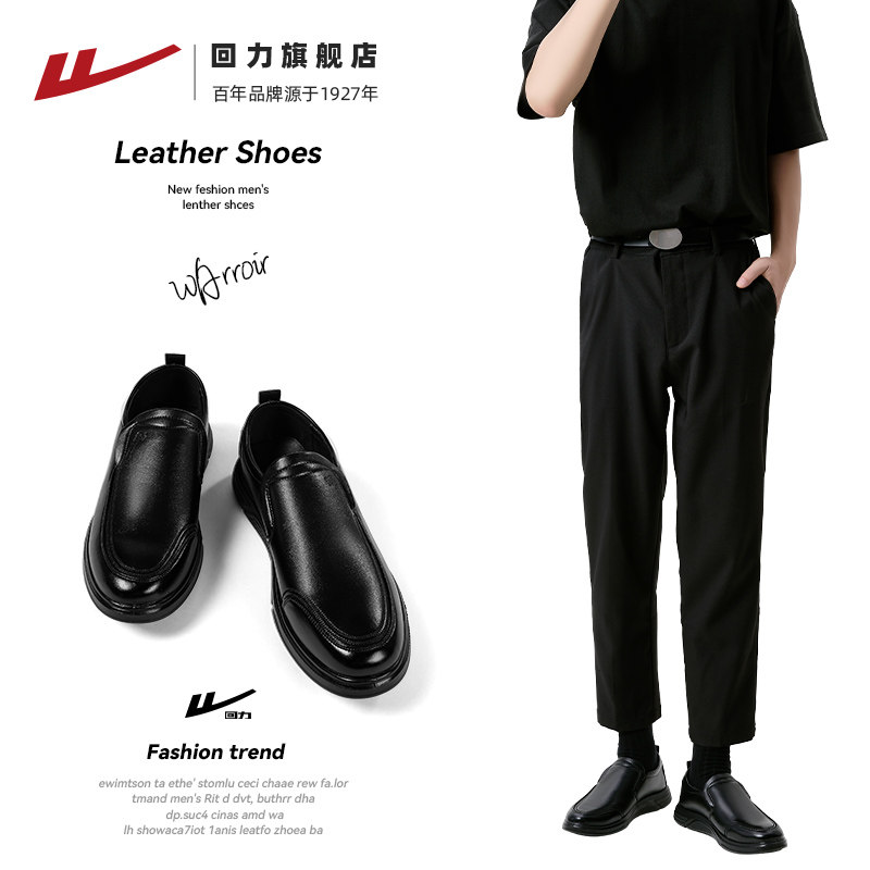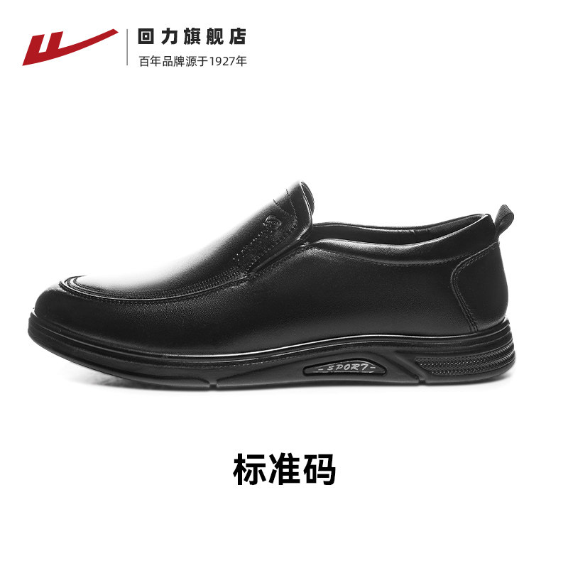 回力皮鞋男款新款商务单鞋男士休闲皮鞋一脚蹬软底黑色面试鞋子男