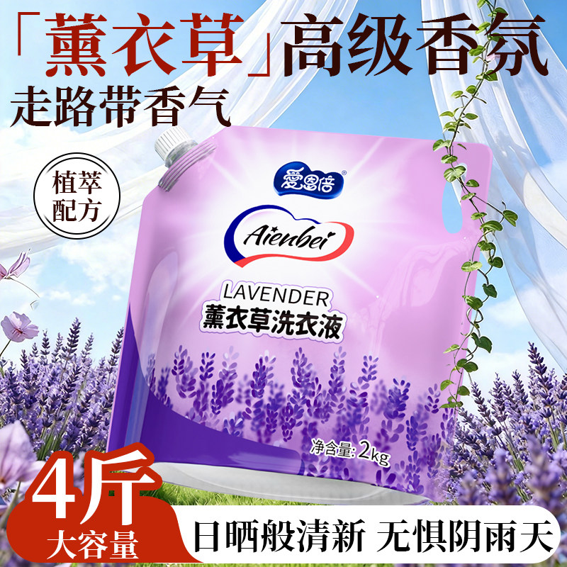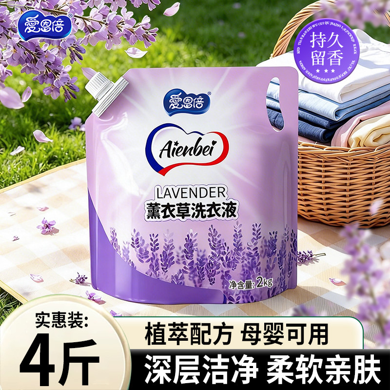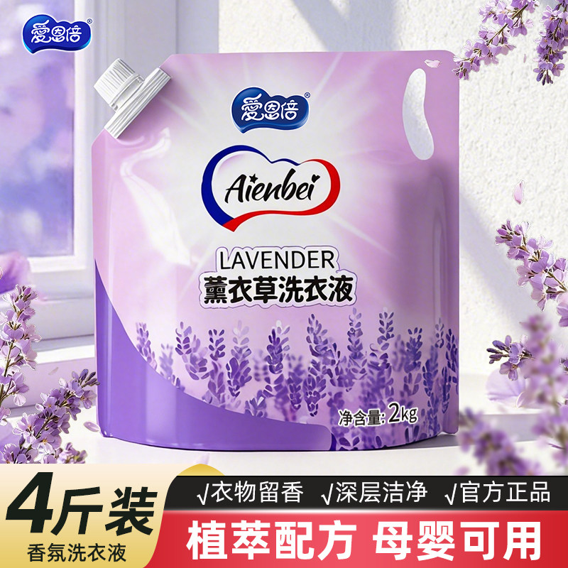 爱恩倍薰衣草洗衣液4斤*1袋婴幼儿童衣服母婴可用洗衣液大人通用