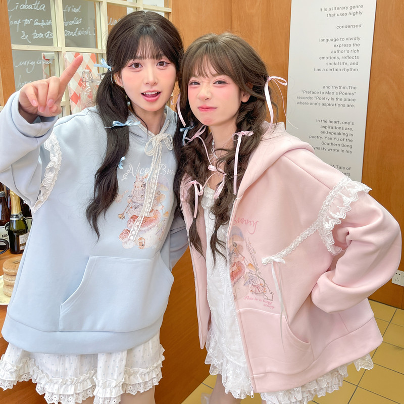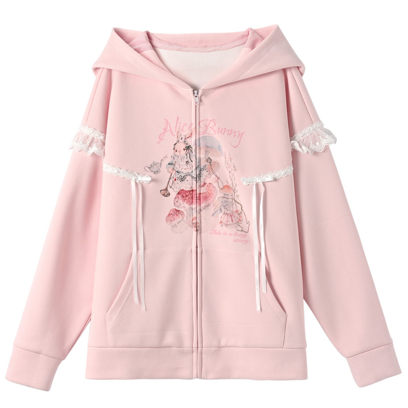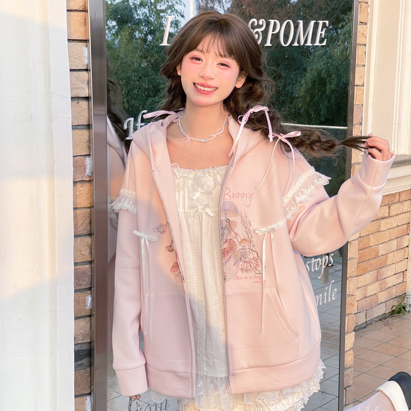 森女部落原创春秋装粉色外套女款2026新款立体兔耳设计感卫衣女