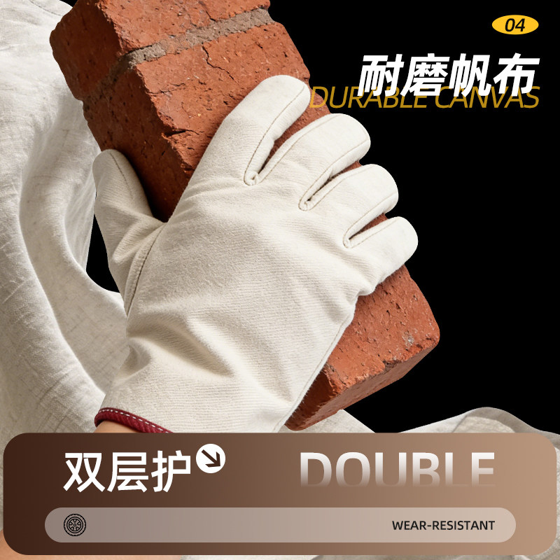 职安康帆布手套劳保耐磨工作双层加厚工业机械电焊焊工防护手套