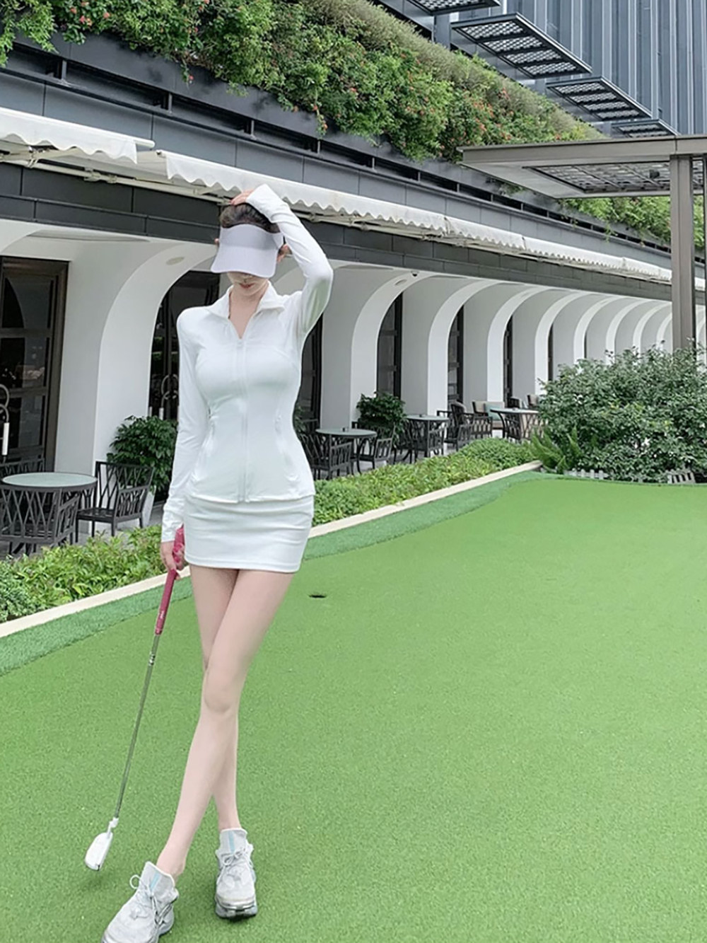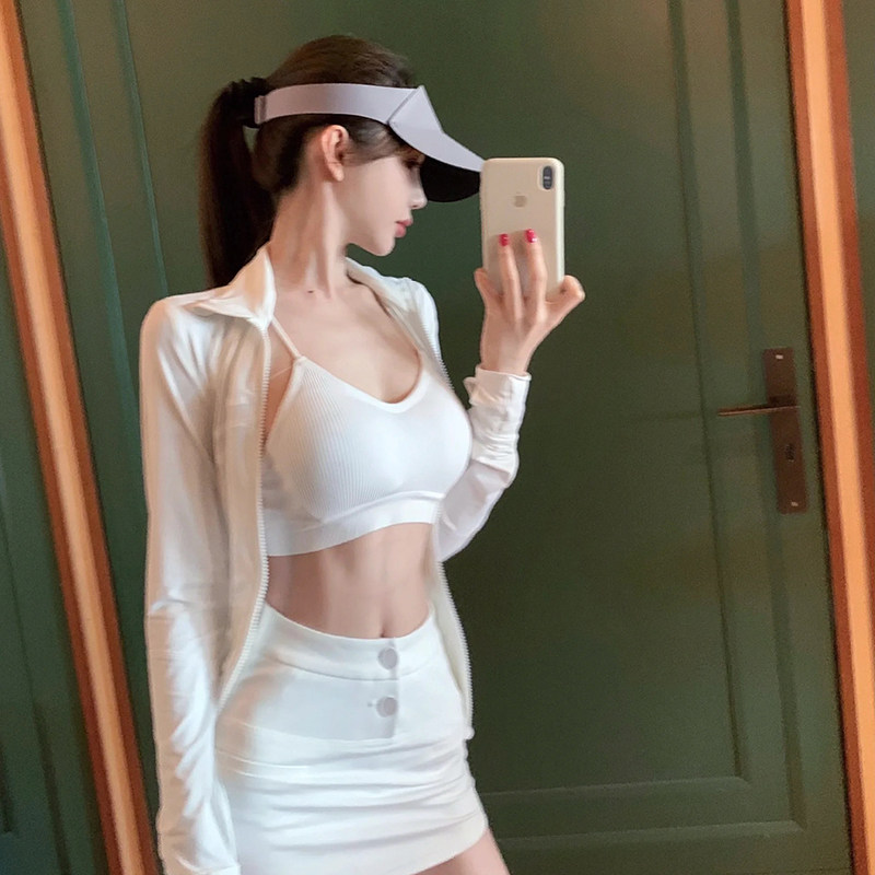 韩版高尔夫服装女冰丝长袖上衣修身显瘦golf半身裙网球包臀裙裤春