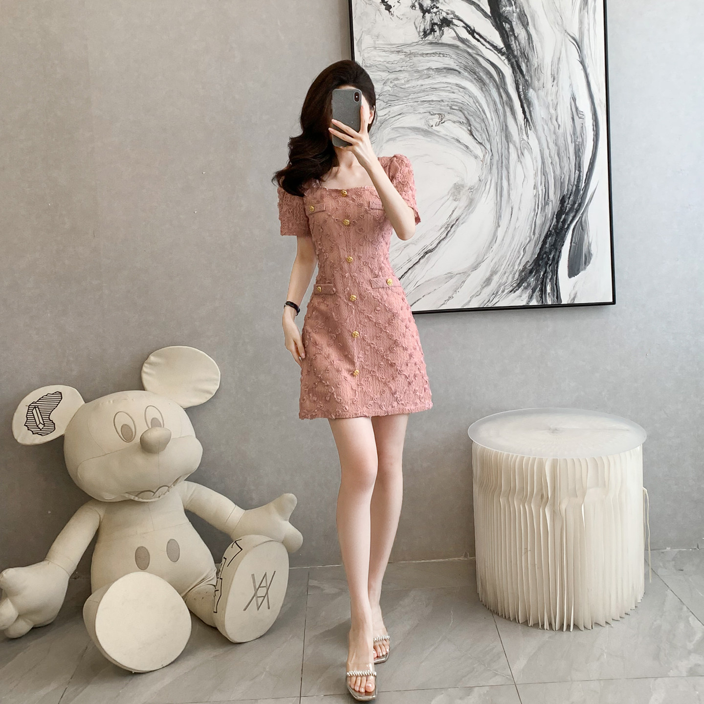 2026夏季新款名媛小香风立体玫瑰蕾丝轻奢连衣裙小个子减龄短裙子