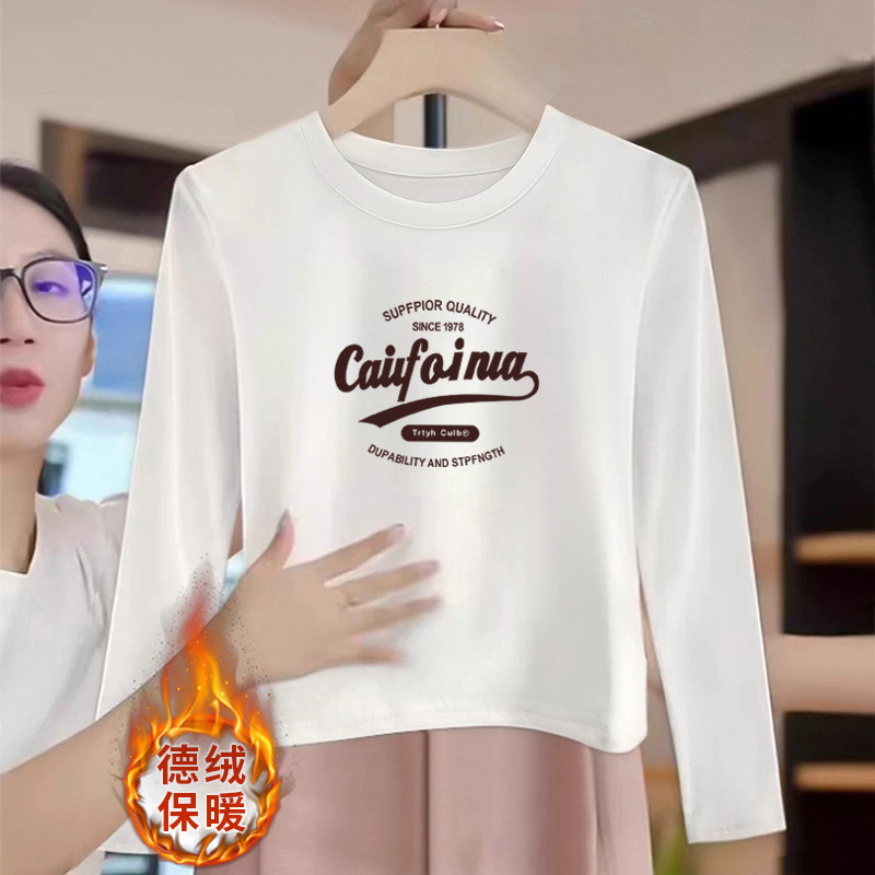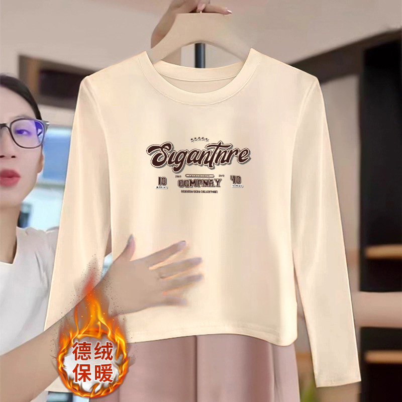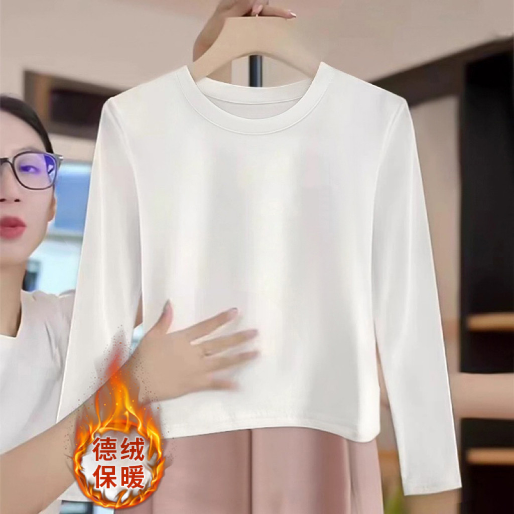 圆领正肩纯色德绒加厚长袖t恤女短款时尚上衣可外穿打底衫秋冬季