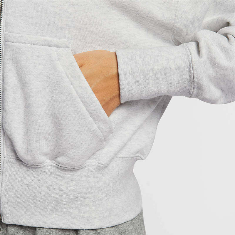Nike耐克外套女运动休闲宽松短款连帽夹克灰色开衫卫衣IO0490-051