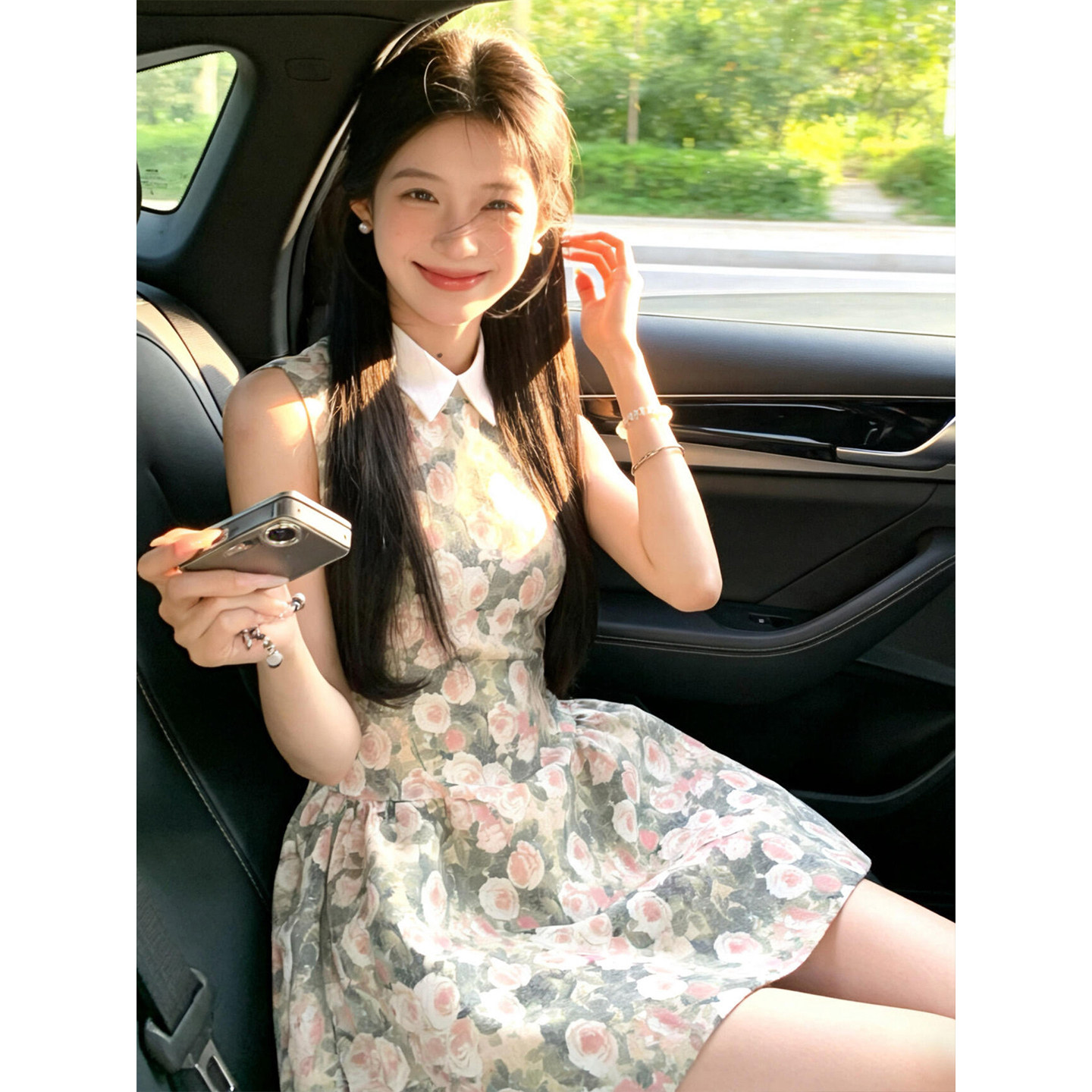 法式气质碎花无袖连衣裙子女夏季2026新款小个子海边度假漂亮短裙