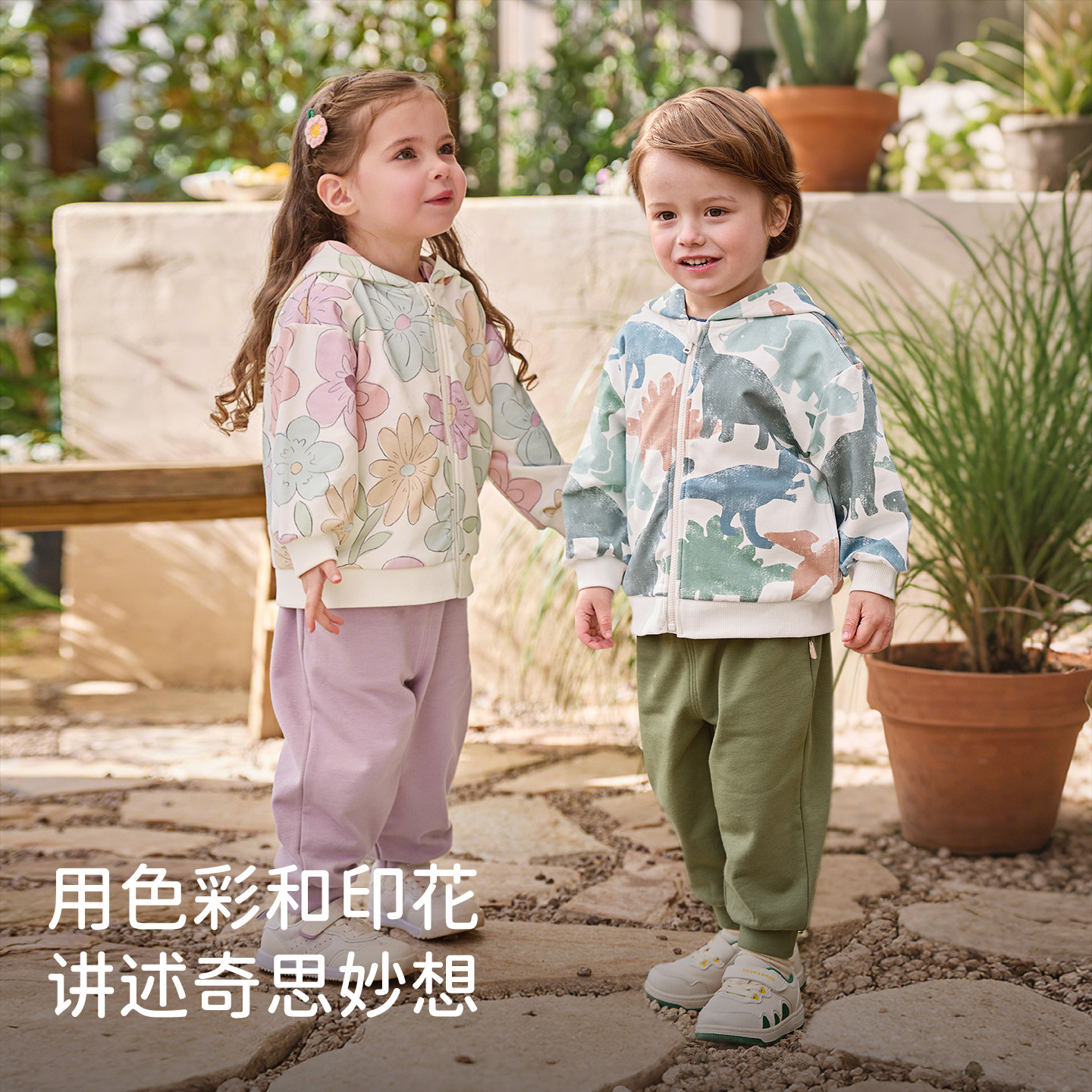 戴维贝拉男童运动连帽卫衣套装女童宝宝2026春装新款儿童外套裤子