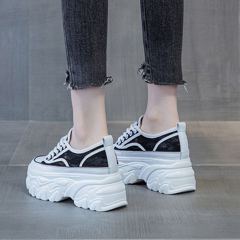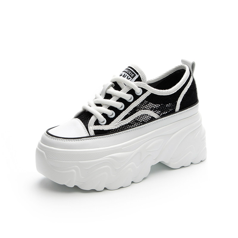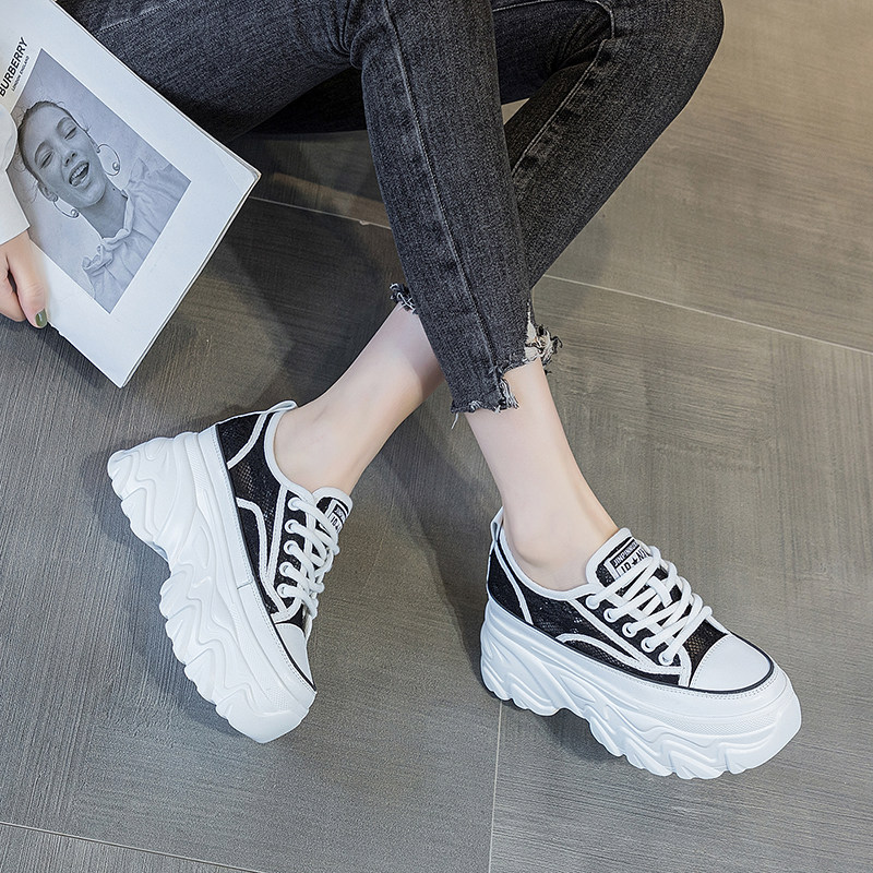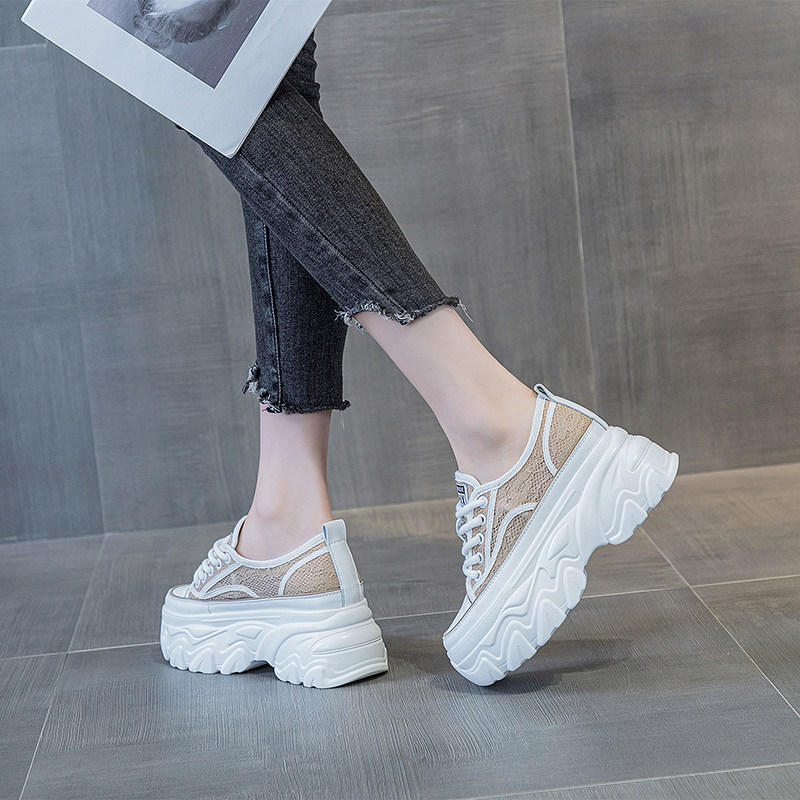 厚底增高10厘米夏季蕾丝网纱厚底渔夫鞋系带女鞋新款镂空松糕单鞋