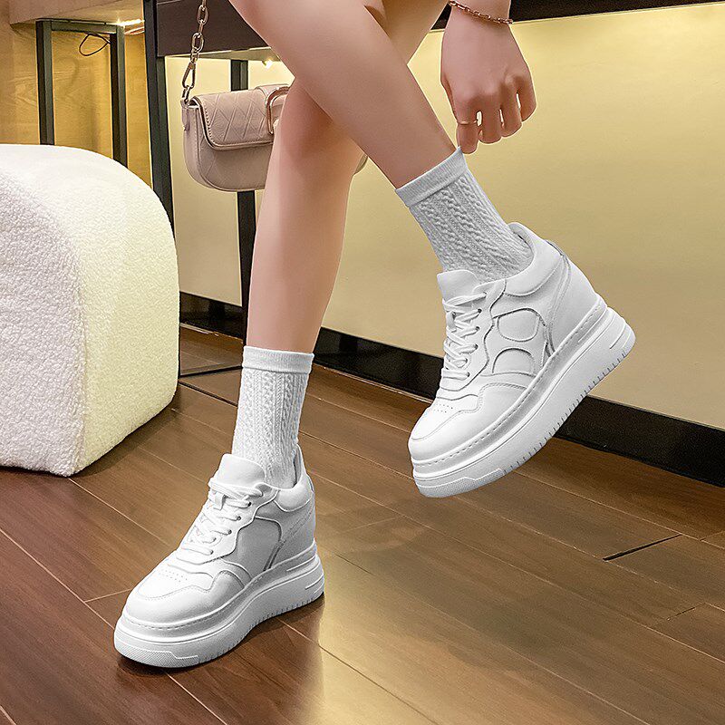 12公分内增高女鞋夏季10厘米增高全真皮网纱透气小白鞋配裙子8cm