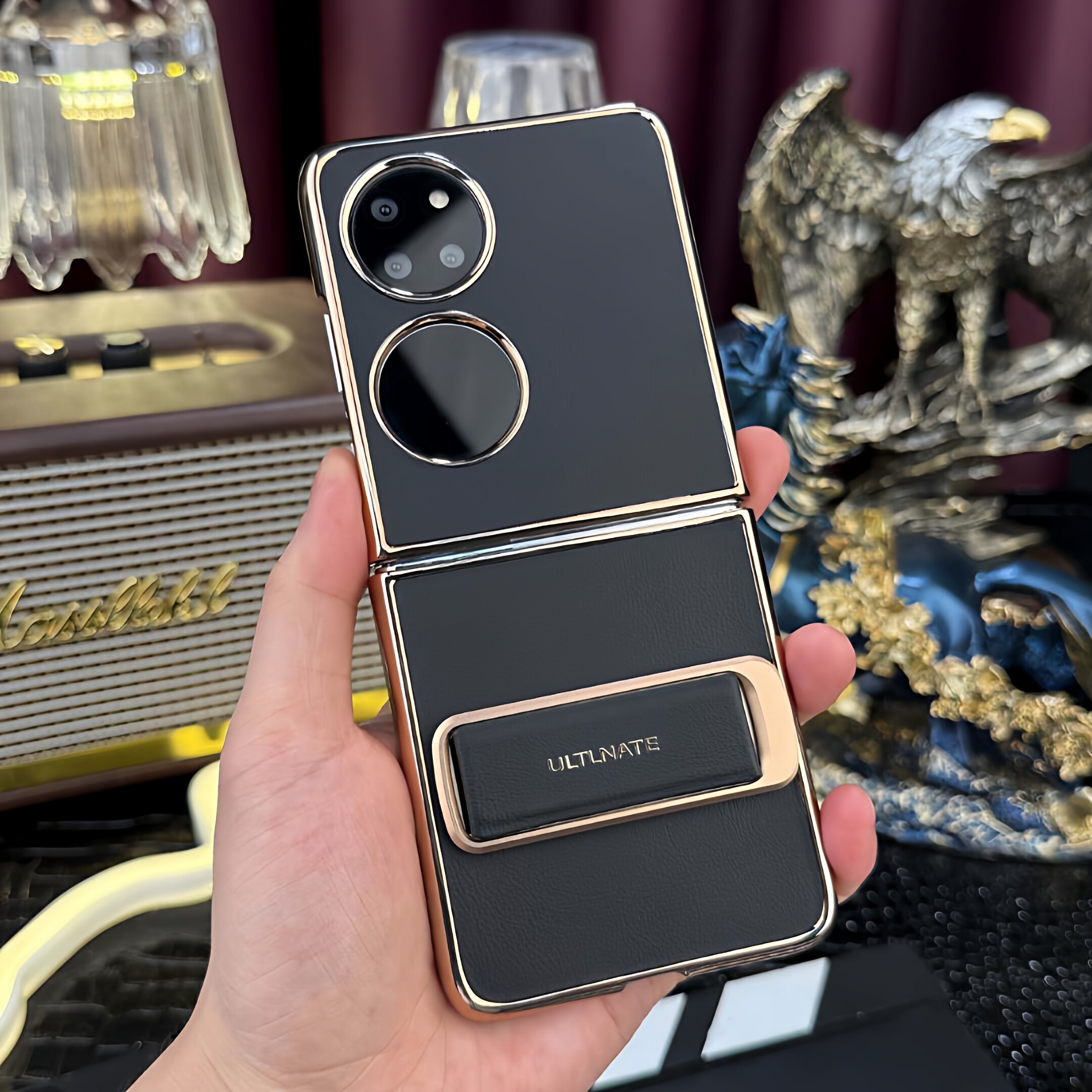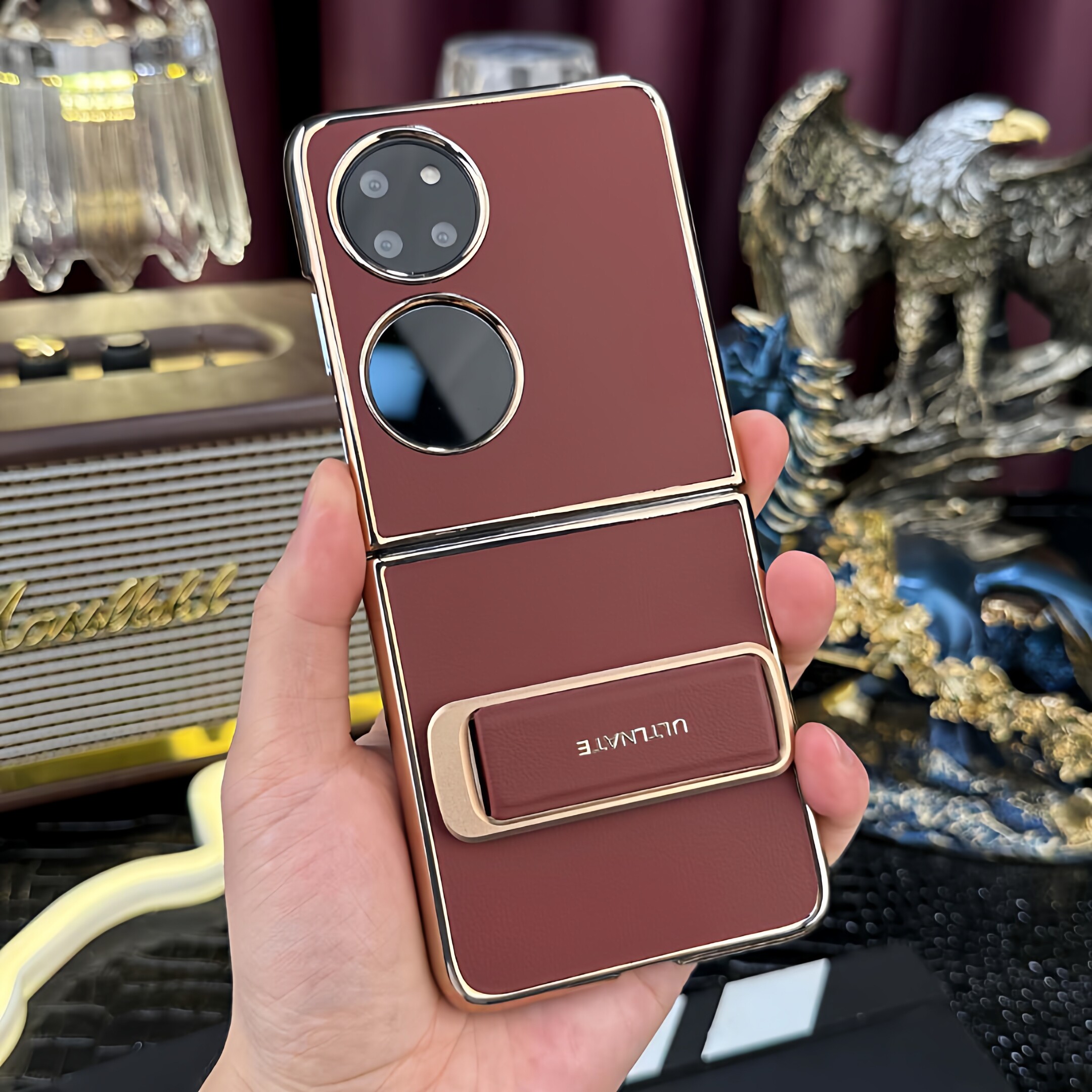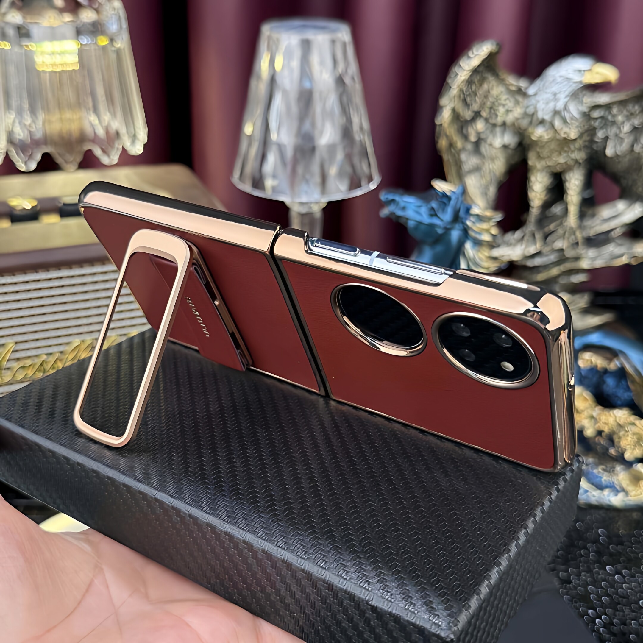 适用华为pocket2手机壳P50Pocket折叠屏腕带支架二合一保护套pockets全包真皮防摔高档商务新款超薄新年红色s