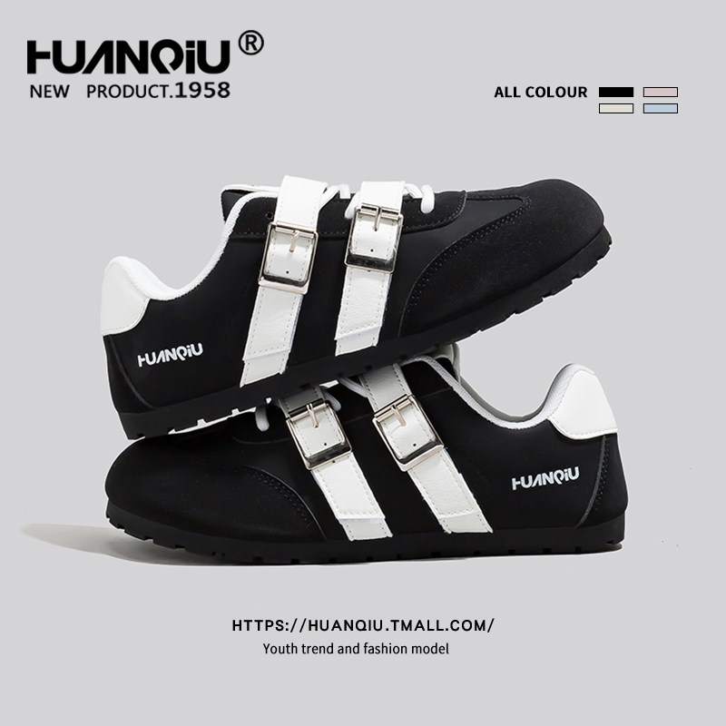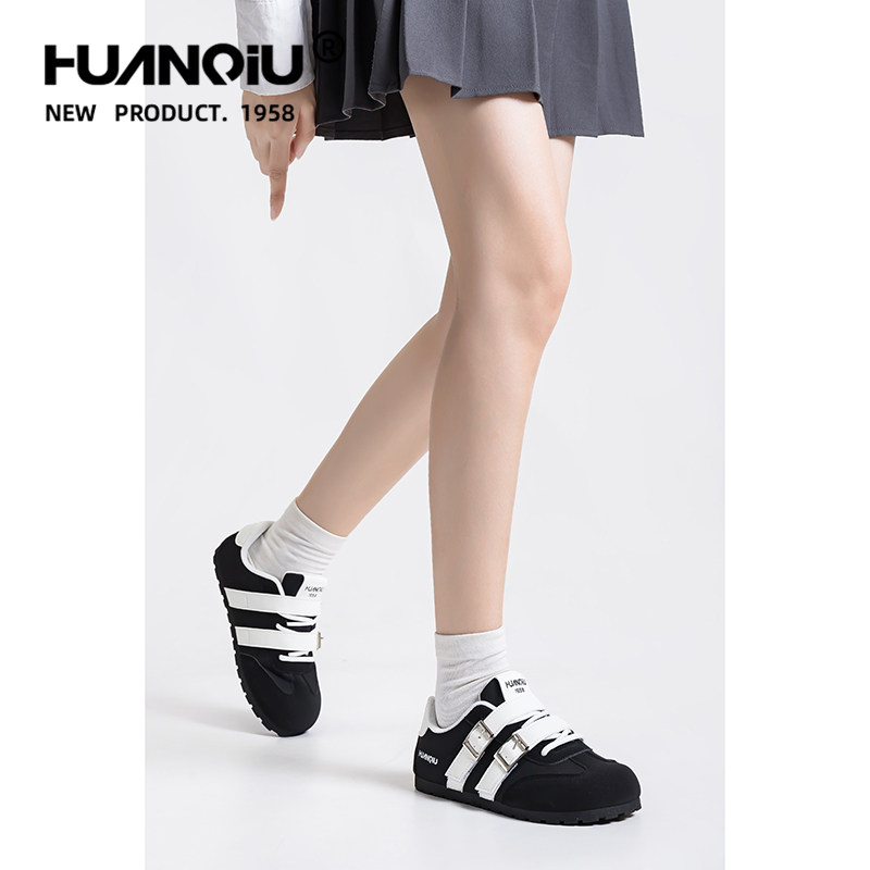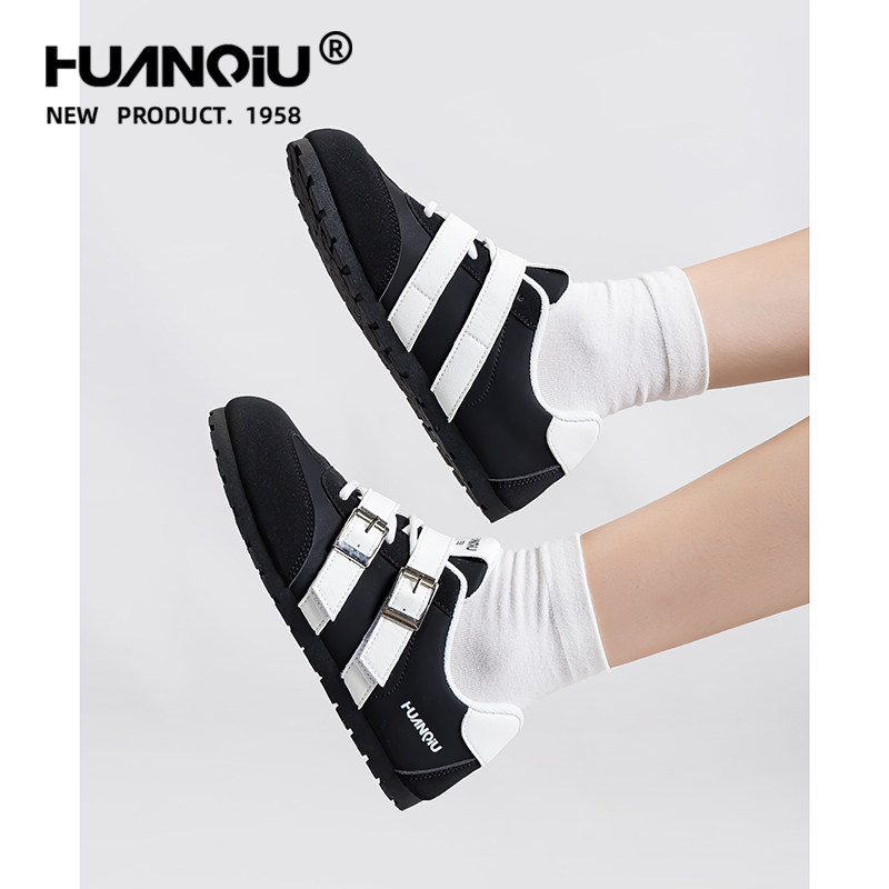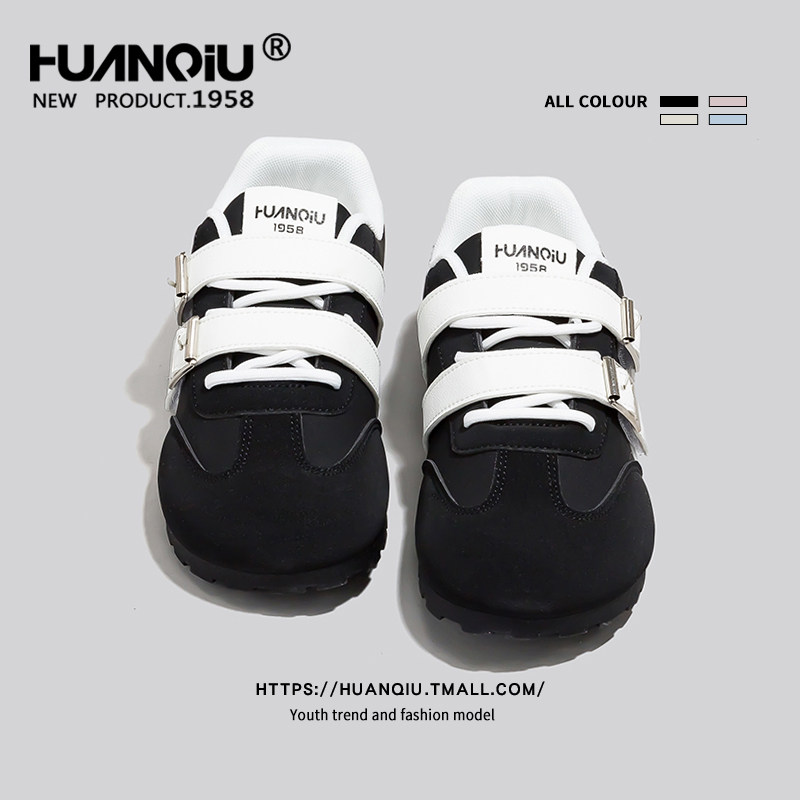 环球黑色巨好看魔术贴德训鞋女2026新款爆款百搭轻便防滑耐磨板鞋