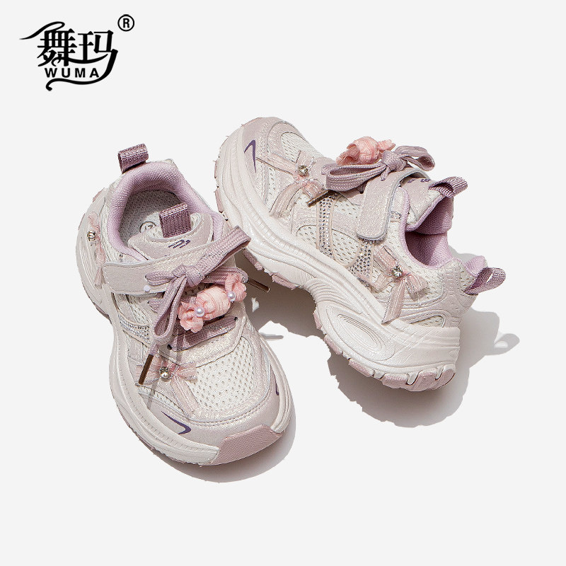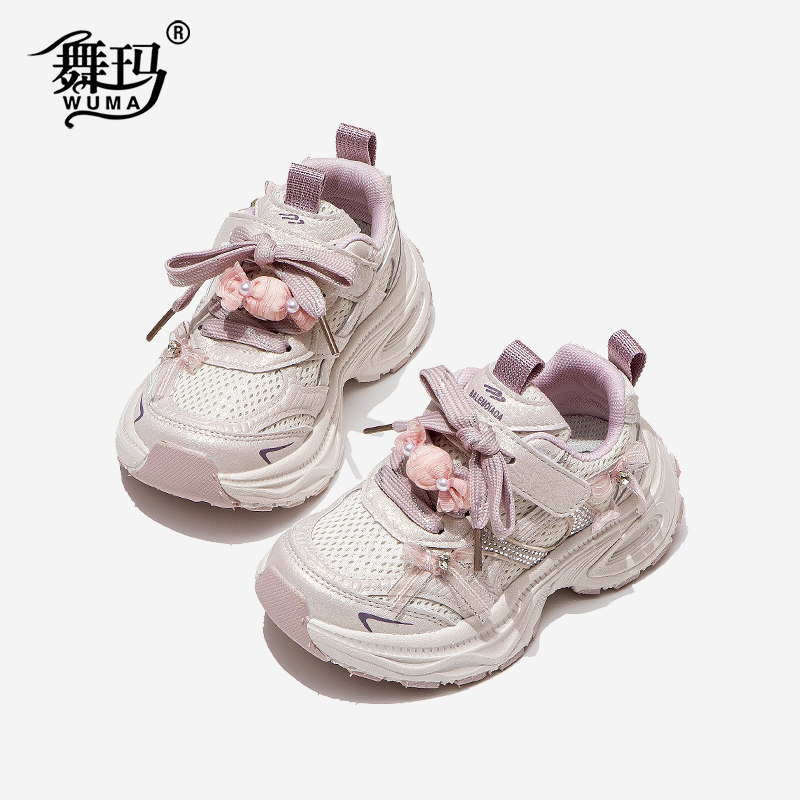 舞玛女童鞋子儿童老爹鞋2026年春季新款小女孩网面甜美防滑运动鞋