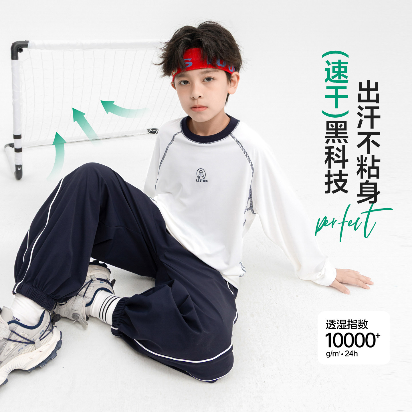 男童春秋白色运动羽毛球速干长袖t恤2026新款儿童轻薄凉感骑行服