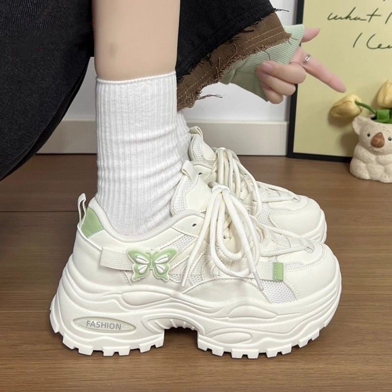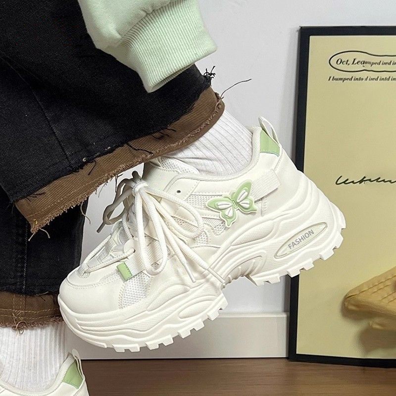 女童甜美风蝴蝶结厚底老爹鞋中大童女孩百搭系带增高运动鞋学生潮