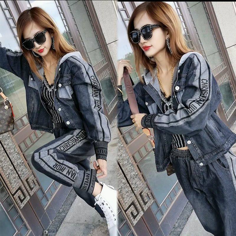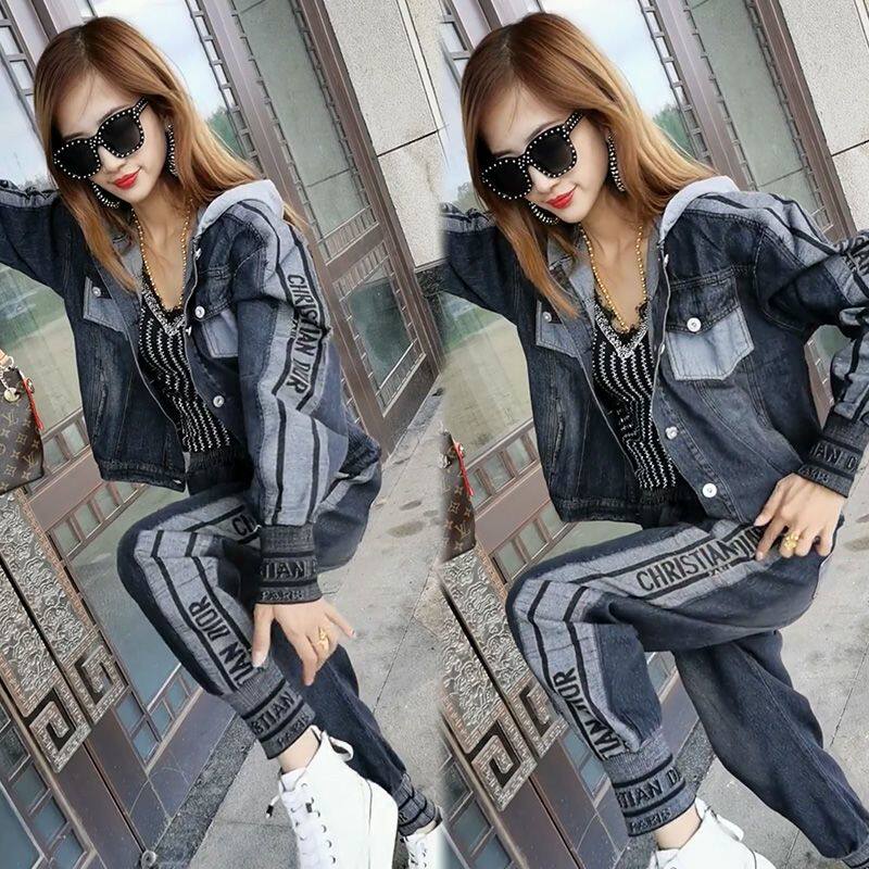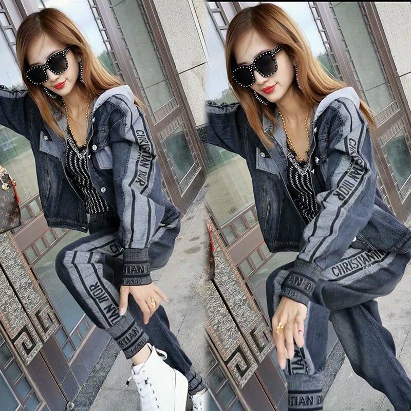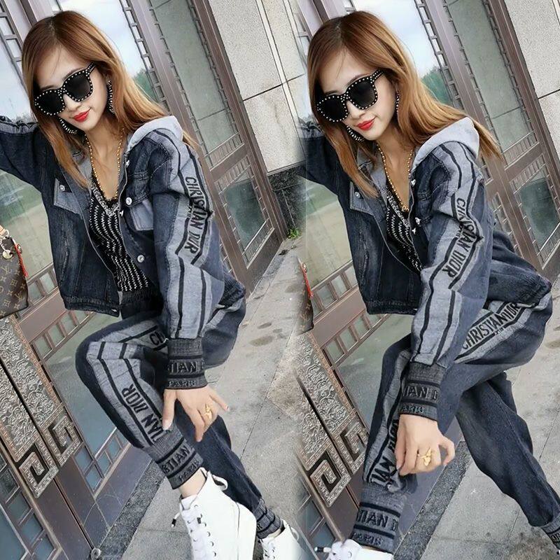 春季新款2026连帽牛仔套装女大码时尚洋气气质高档潮流宽松两件套