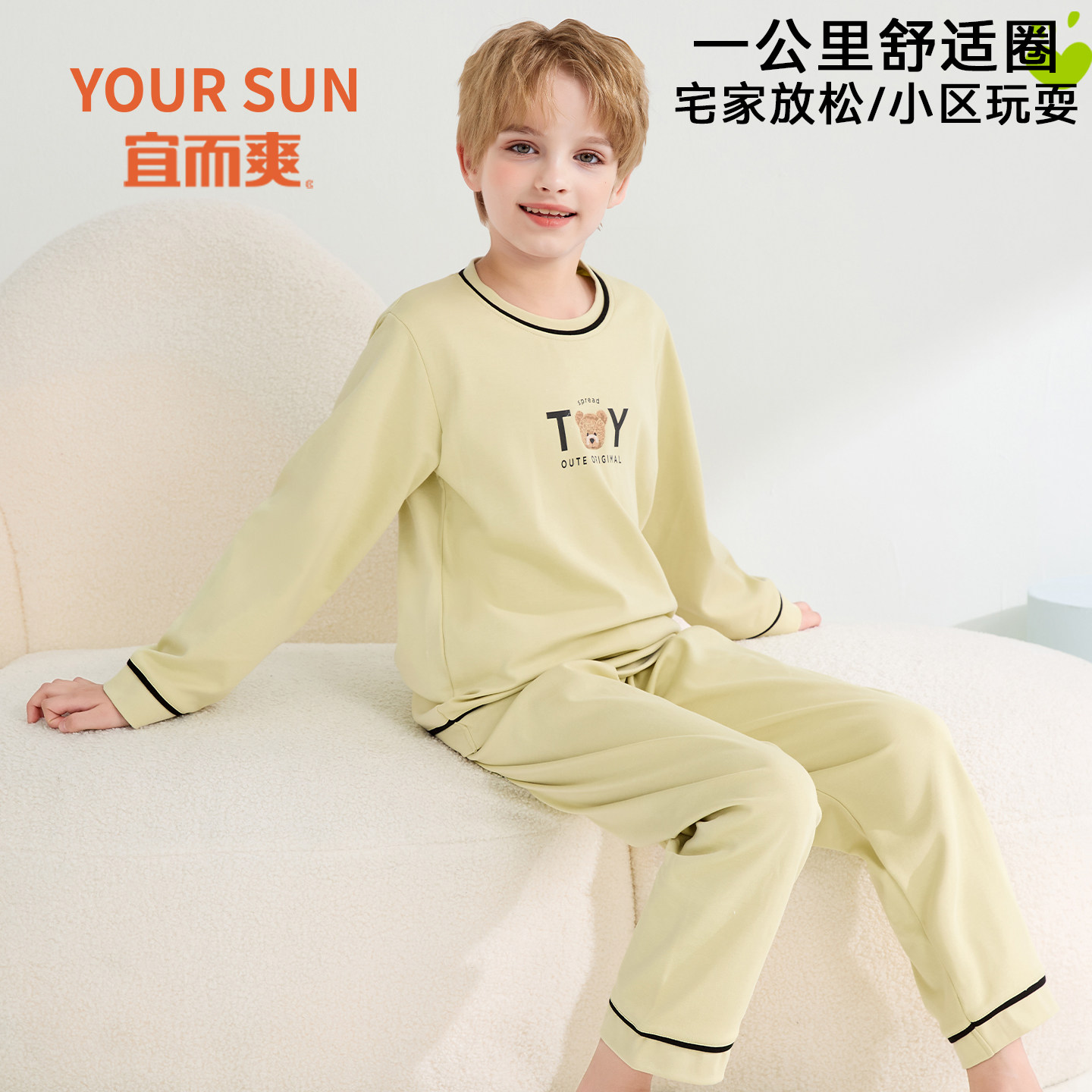宜而爽儿童睡衣男童春秋纯棉长袖中大童男孩家居服全棉套装青少年