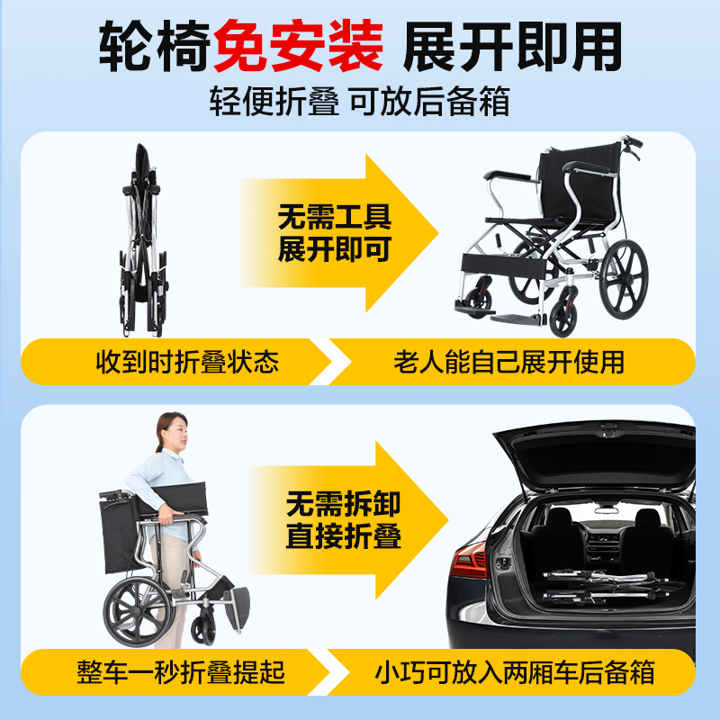 可孚小型轮椅折叠超轻便老人外出专用简易车载手动便携式小轮儿童